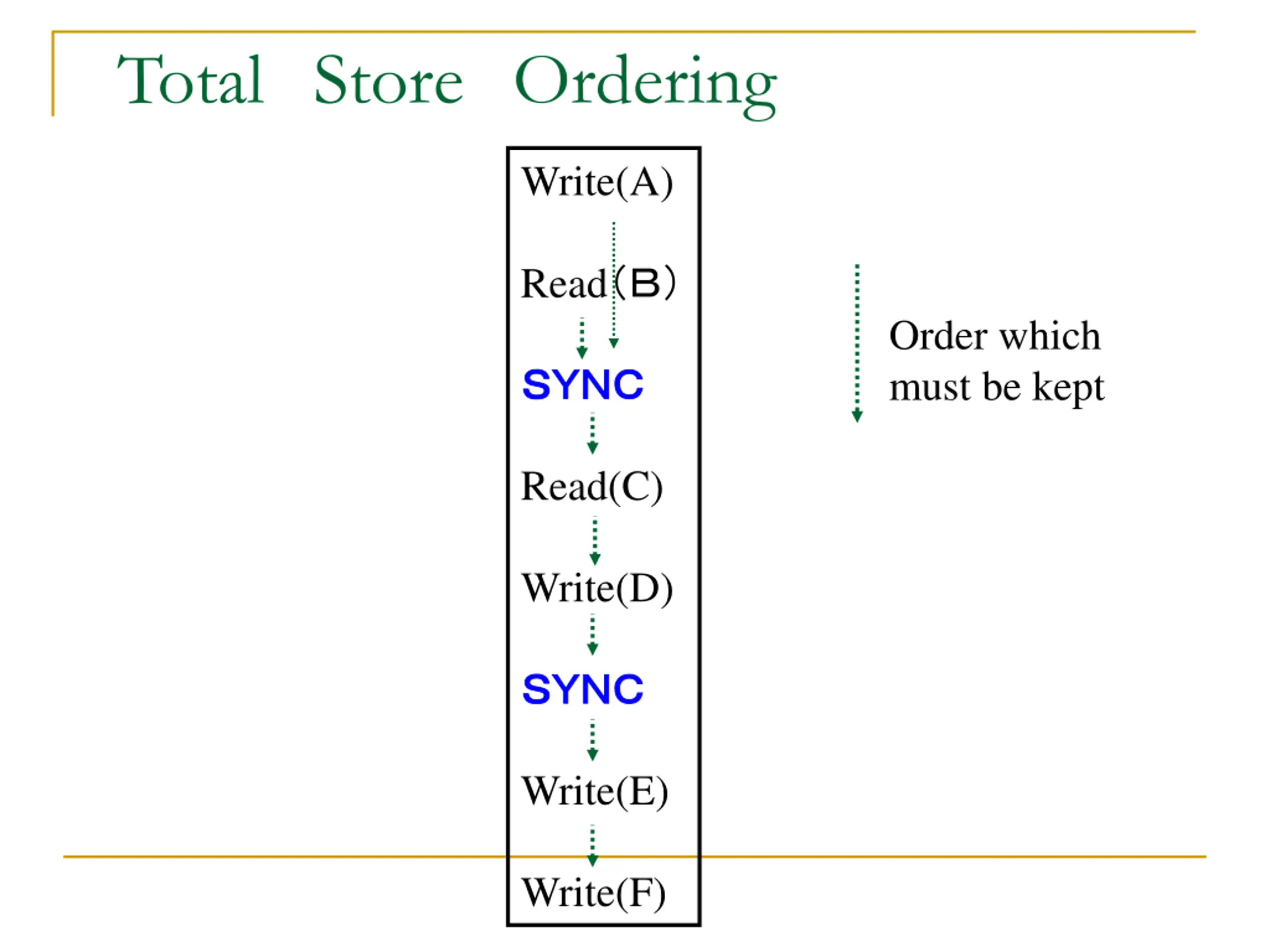 Total Store Ordering Write(A) Read Order which must be kept Read(C) Write(D) Write(E) Write(F)
