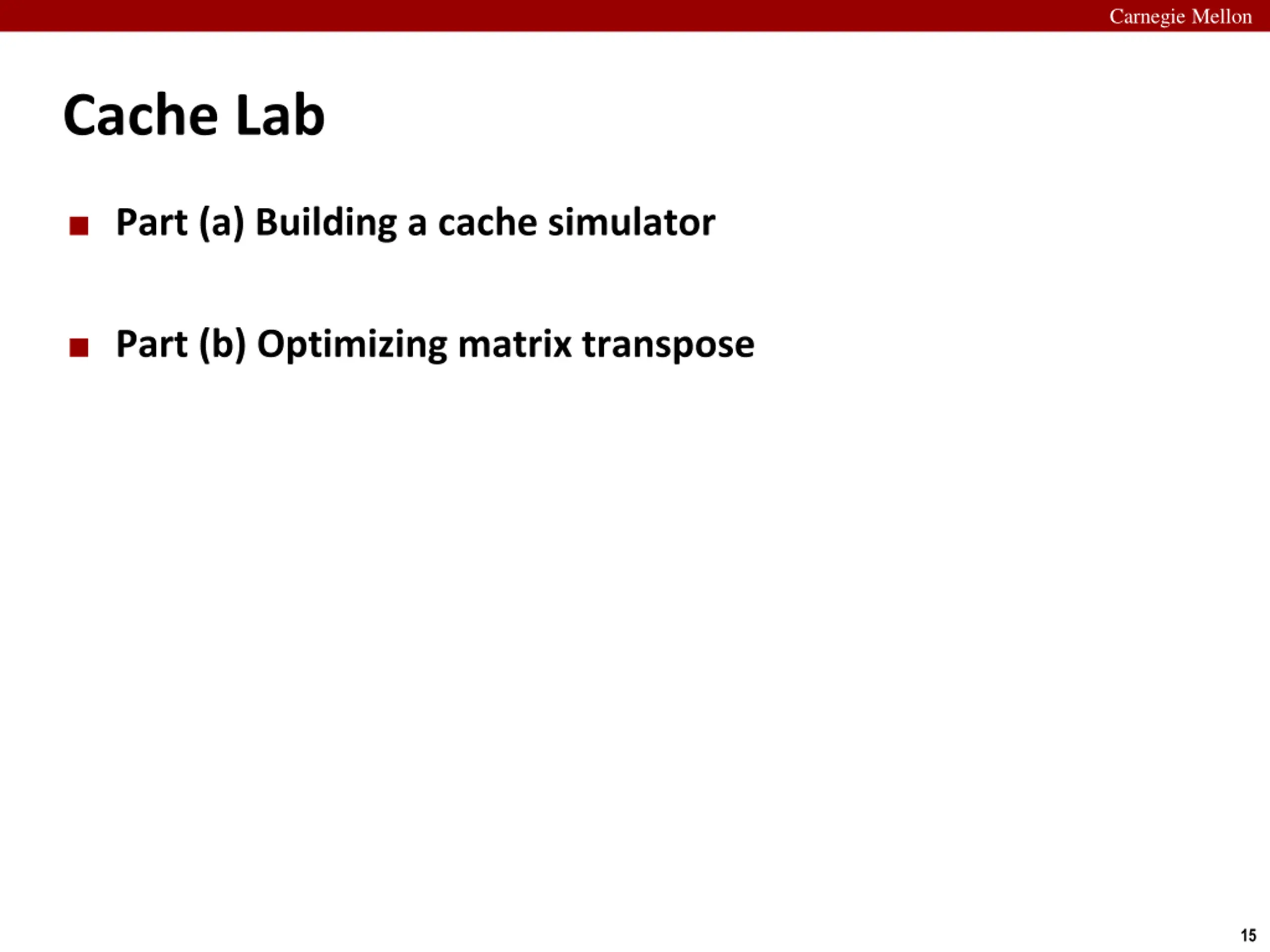 Carnegie Mellon Cache Lab Part (a) Building a cache simulator Part (b) Optimizing matrix transpose 15
