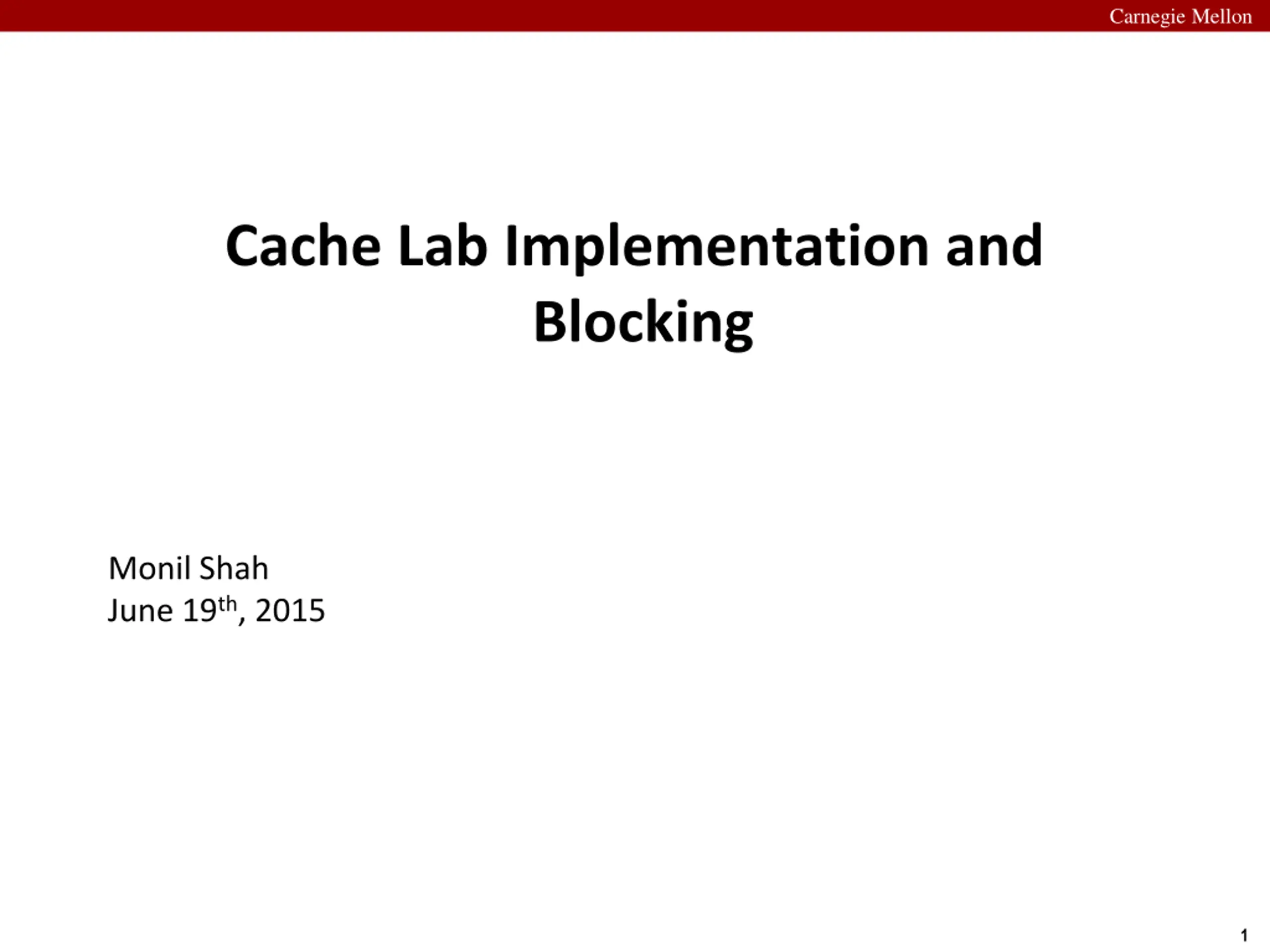 Carnegie Mellon Cache Lab Implementation and Blocking Monil Shah June 19th, 2015 1