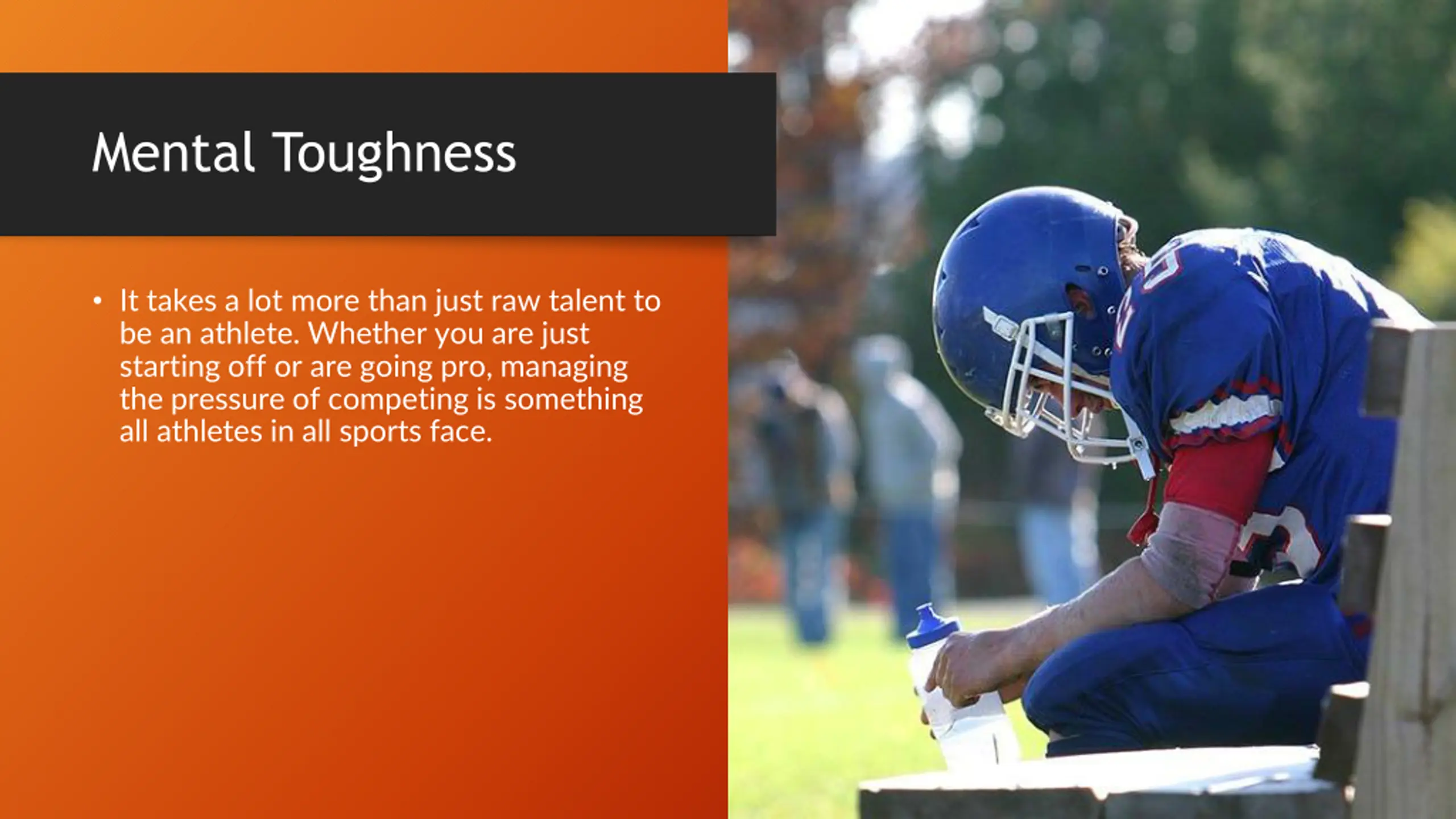 Mental Toughness It takes a lot more than just raw talent to be an athlete. Whether you are just starting off or are going pro, managing the pressure of competing is something all athletes in all sports face.