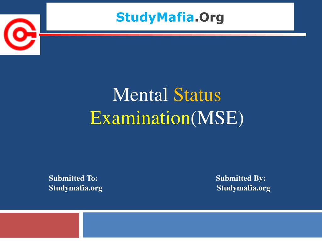 StudyMafia.Org Mental Status Examination(MSE) Submitted To: Studymafia.org Studymafia.org Submitted By: