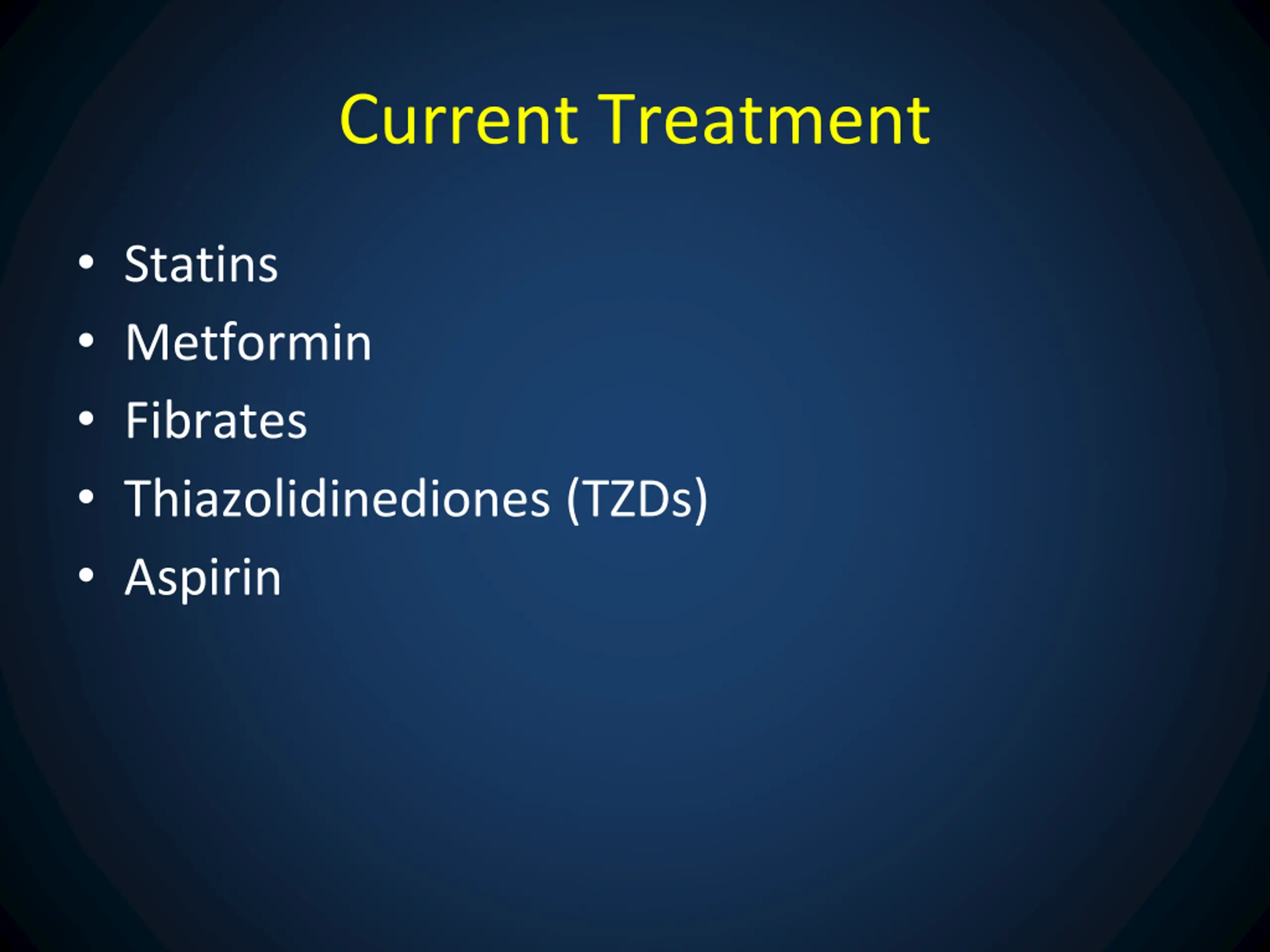 Current Treatment Statins Metformin Fibrates Thiazolidinediones (TZDs) Aspirin