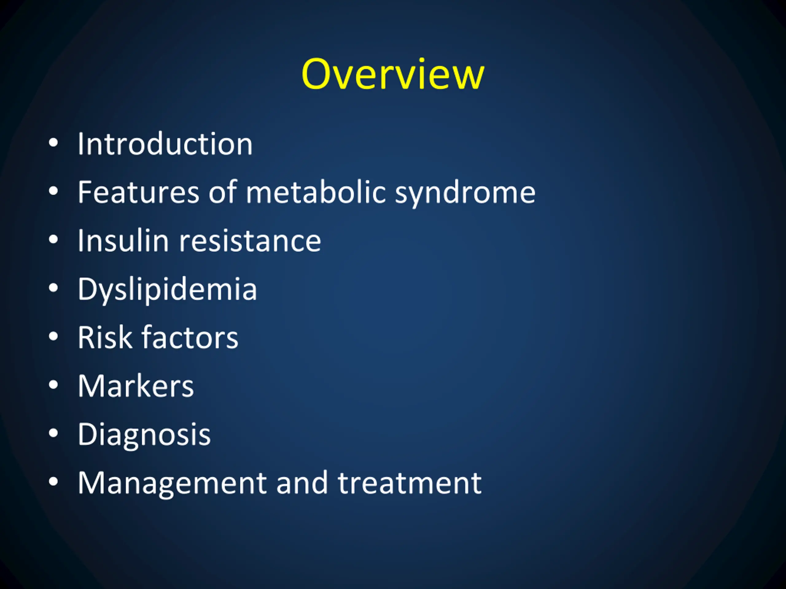 Overview Introduction Features of metabolic syndrome Insulin resistance Dyslipidemia Risk factors Markers Diagnosis Management and treatment