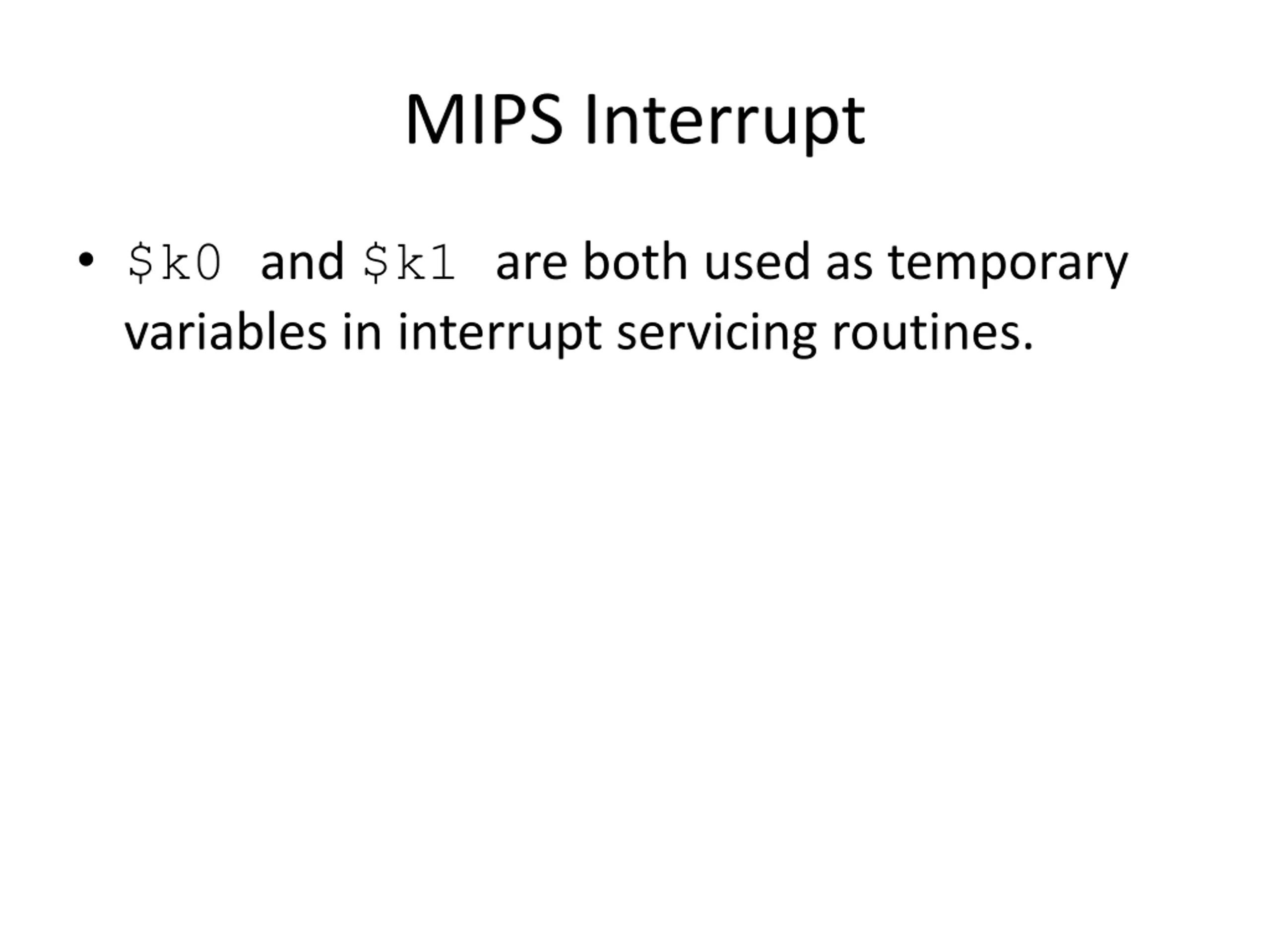 MIPS Interrupt $k0 and $k1 are both used as temporary variables in interrupt servicing routines.