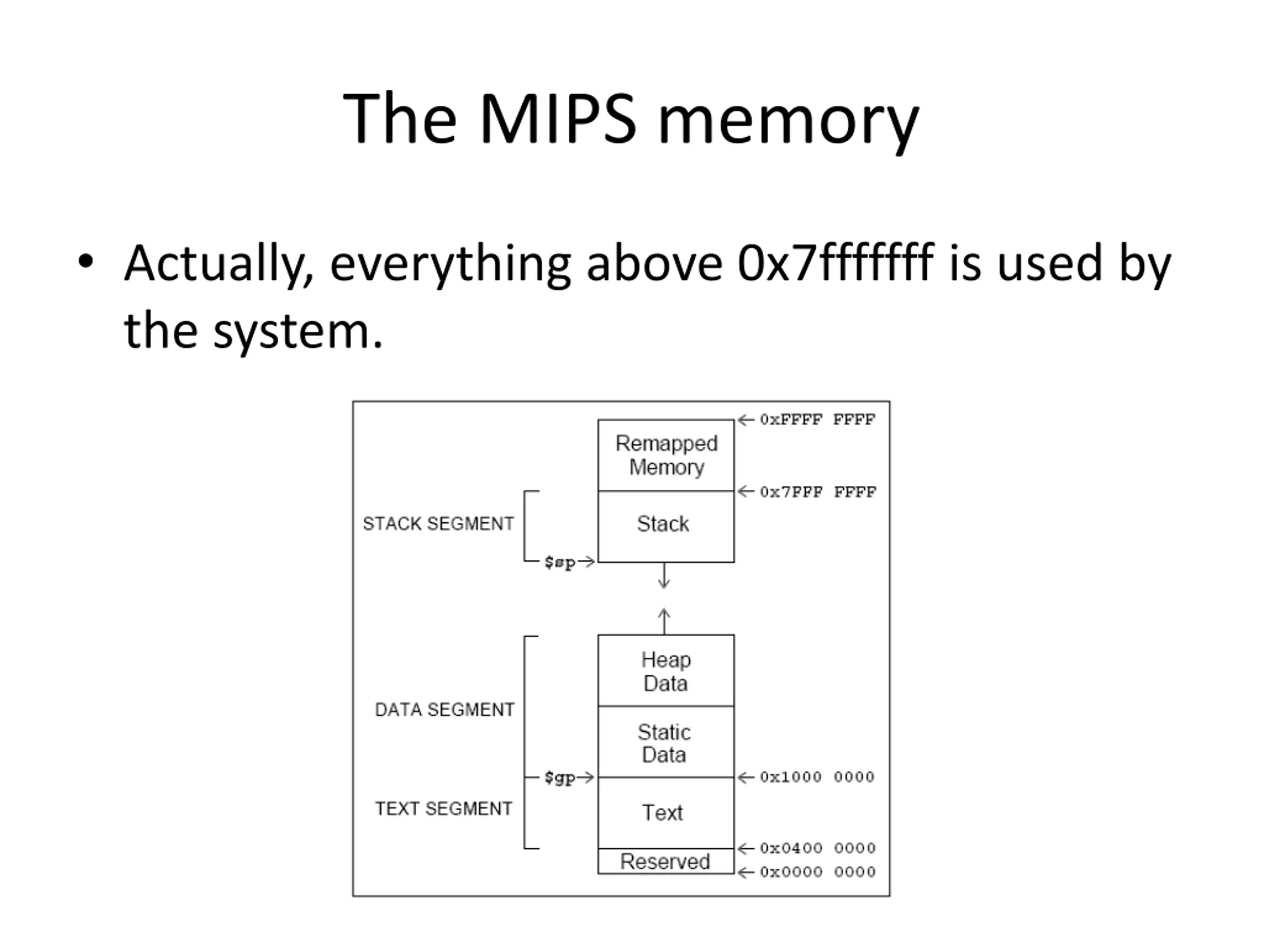 The MIPS memory Actually, everything above 0x7fffffff is used by the system.