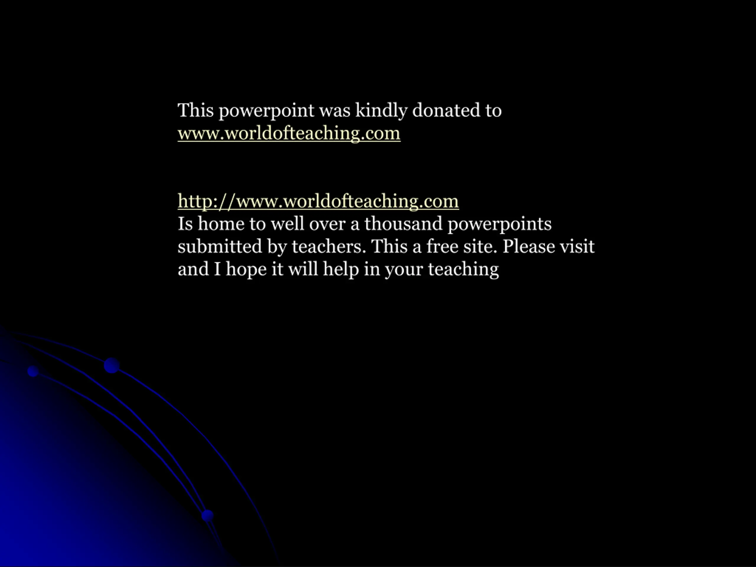 This powerpoint was kindly donated to www.worldofteaching.com http://www.worldofteaching.com Is home to well over a thousand powerpoints submitted by teachers. This a free site. Please visit and I hope it will help in your teaching