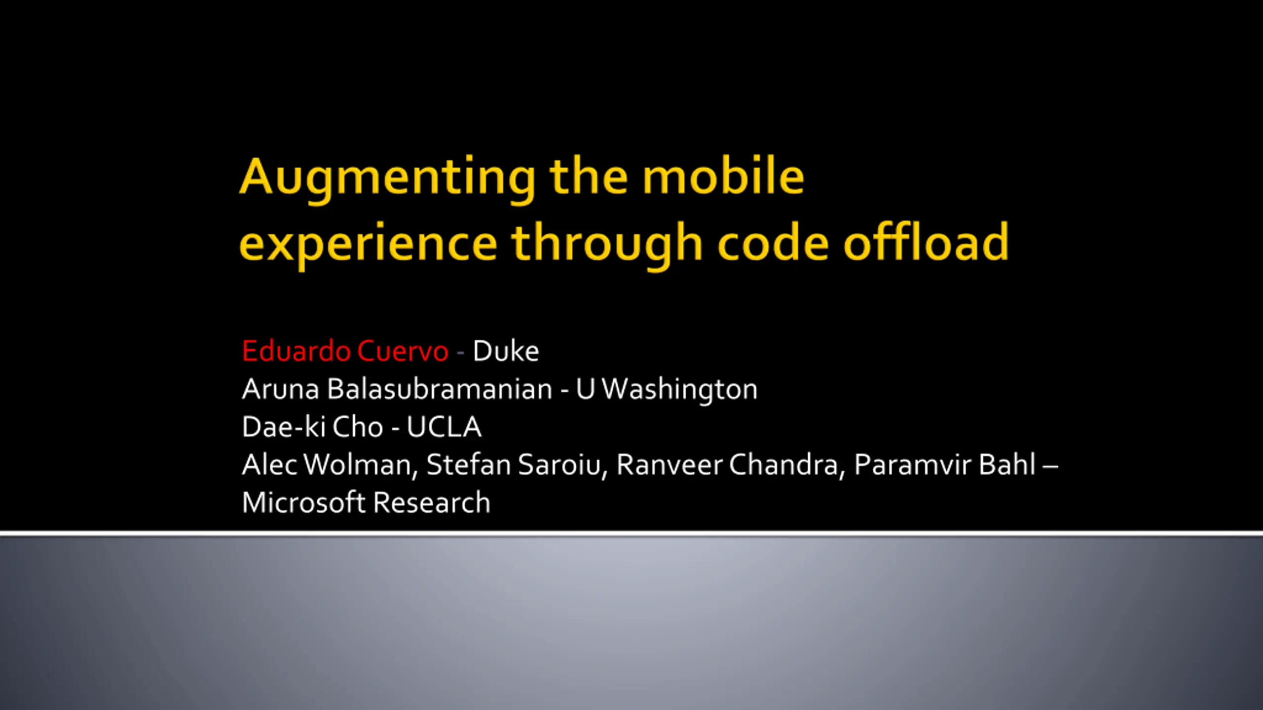 Eduardo Cuervo - Duke Aruna Balasubramanian - U Washington Dae-ki Cho - UCLA Alec Wolman, Stefan Saroiu, Ranveer Chandra, Paramvir Bahl Microsoft Research