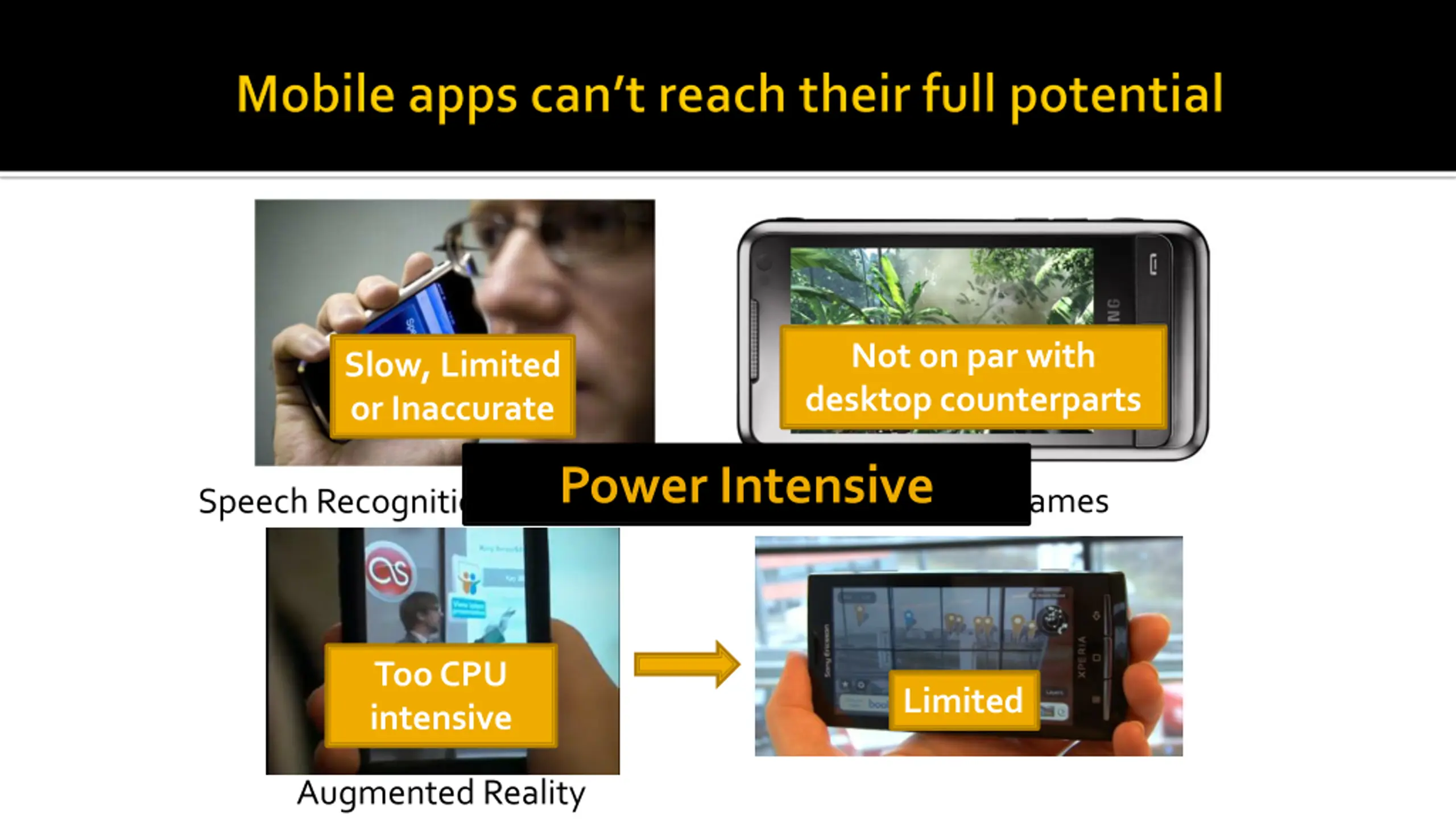 Not on par with desktop counterparts Slow, Limited or Inaccurate Power Intensive Interactive Games Speech Recognition and Synthesis Too CPU intensive Limited Augmented Reality
