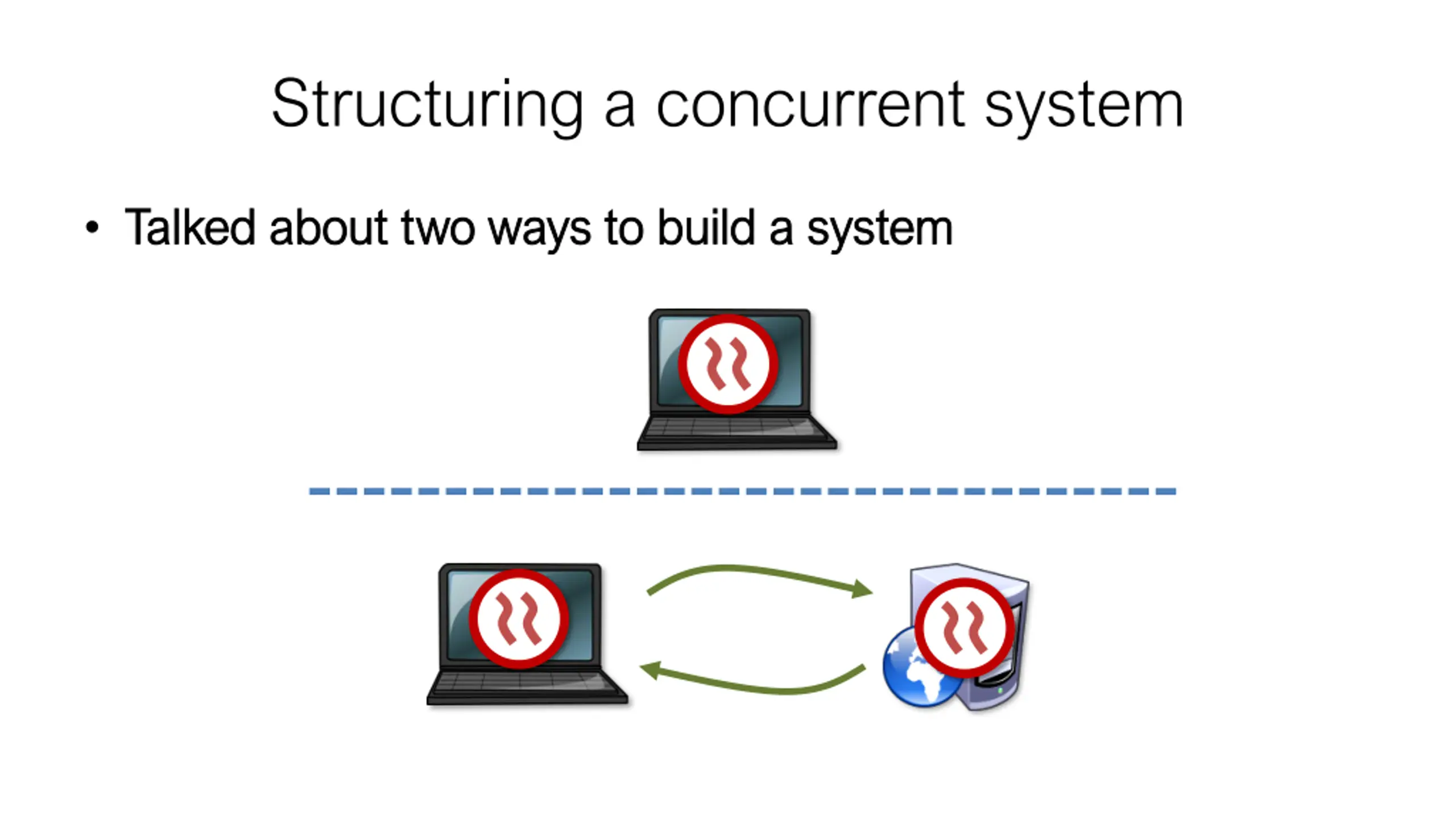 Structuring a concurrent system Talked about two ways to build a system Talked about two ways to build a system