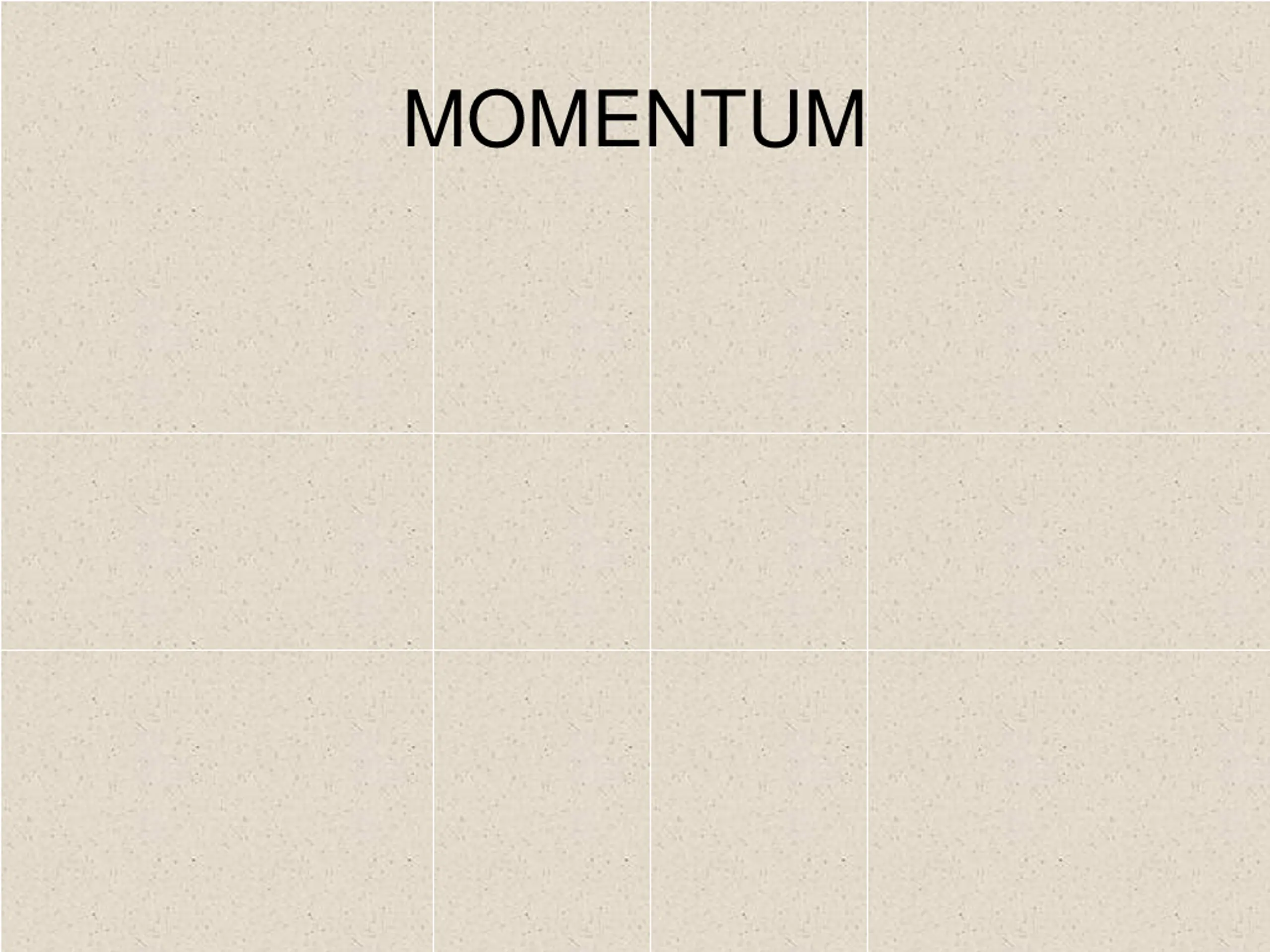 Question 1 Calculate the momentum of a rugby player, mass 120kg moving at 3m/s. p = m x v = 120kg x 3m/s momentum = 360 kg m/s