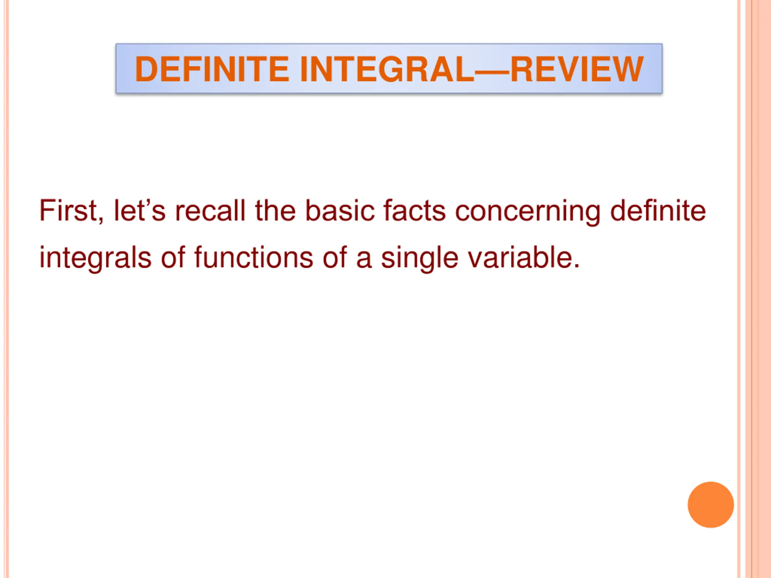 DEFINITE INTEGRALREVIEW First, let s recall the basic facts concerning definite integrals of functions of a single variable.