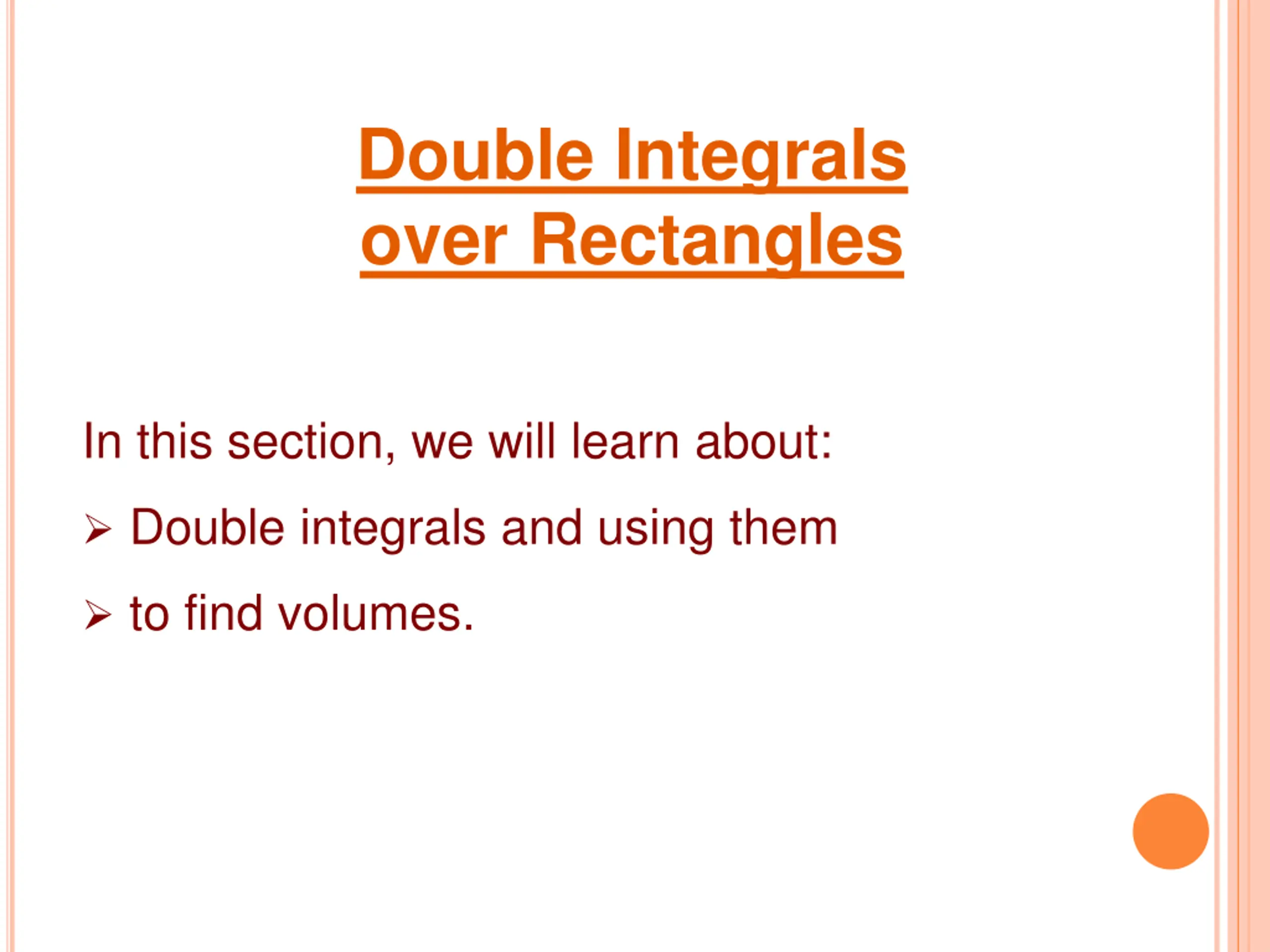 Double Integrals over Rectangles In this section, we will learn about: Double integrals and using them to find volumes.