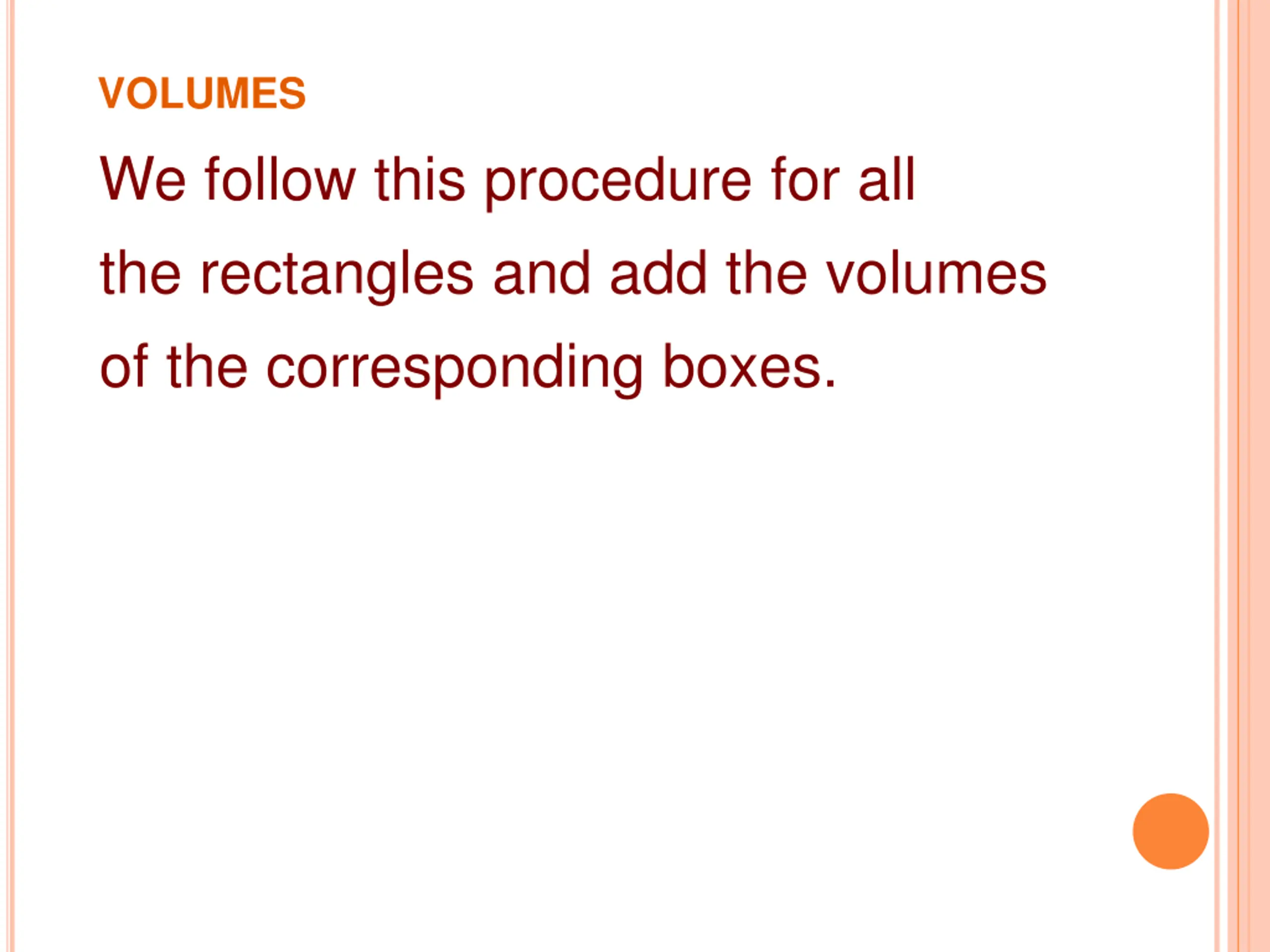 VOLUMES We follow this procedure for all the rectangles and add the volumes of the corresponding boxes.
