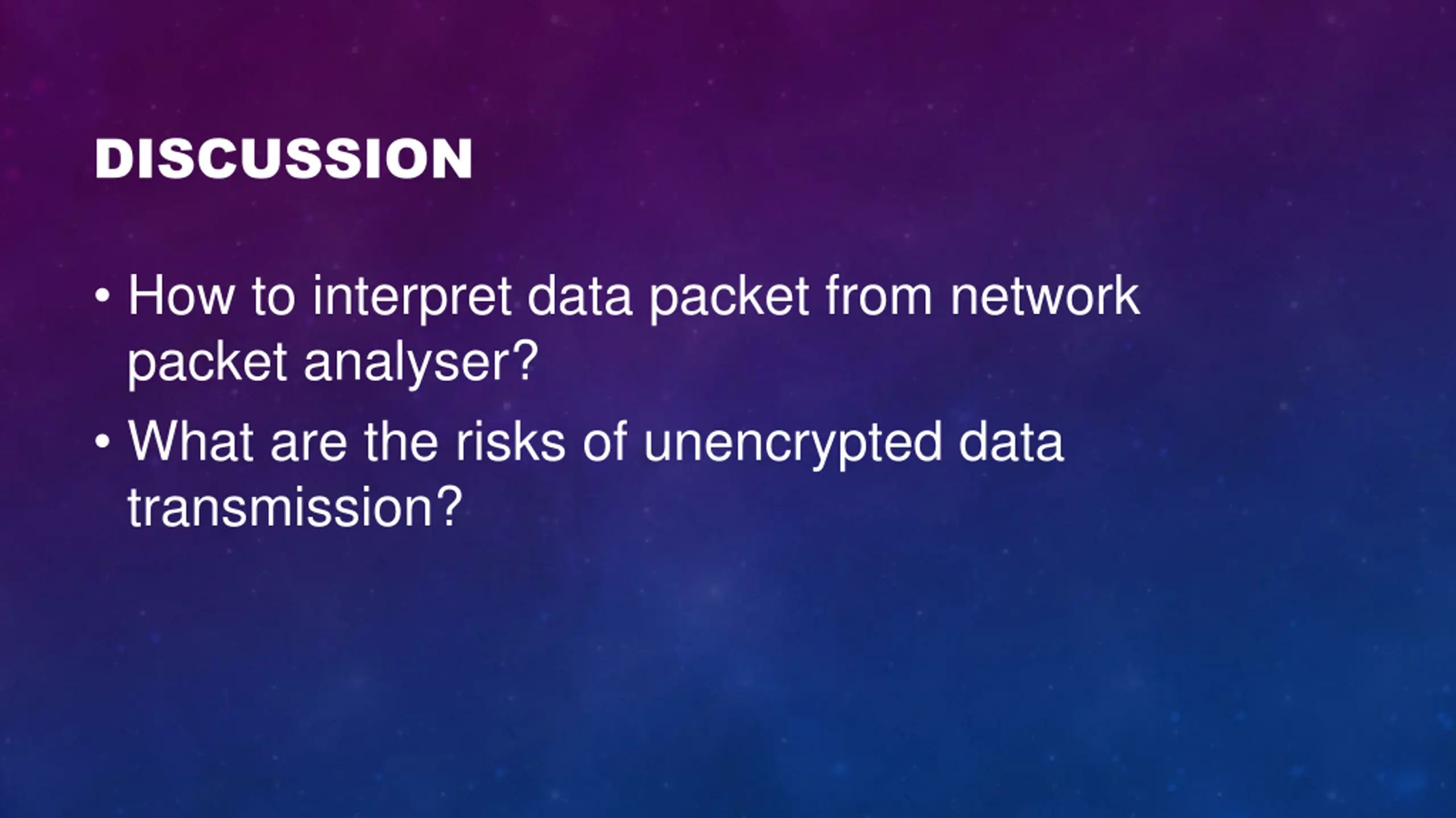 DISCUSSION How to interpret data packet from network packet analyser? What are the risks of unencrypted data transmission?
