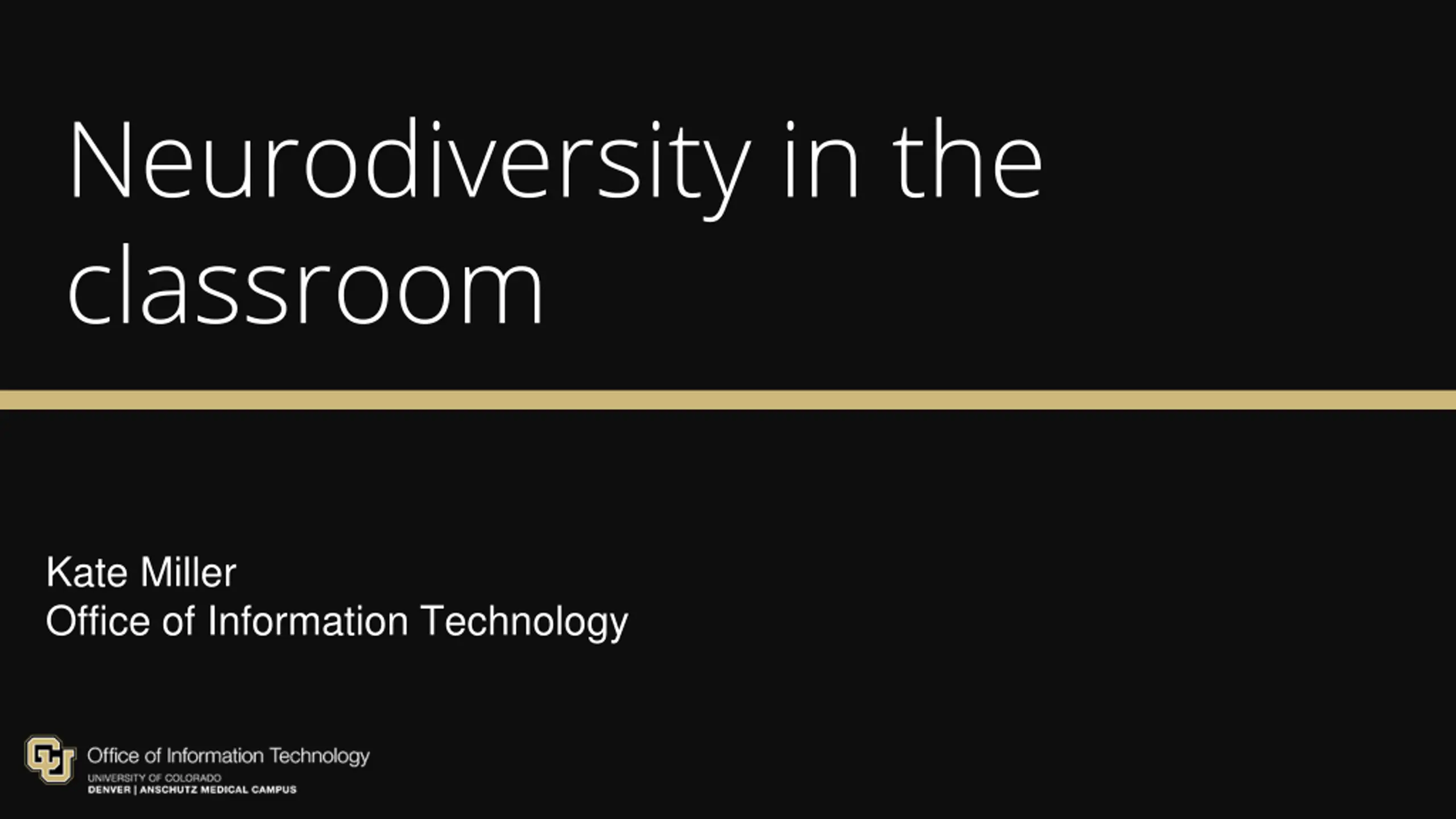 Neurodiversity in the classroom Kate Miller Office of Information Technology