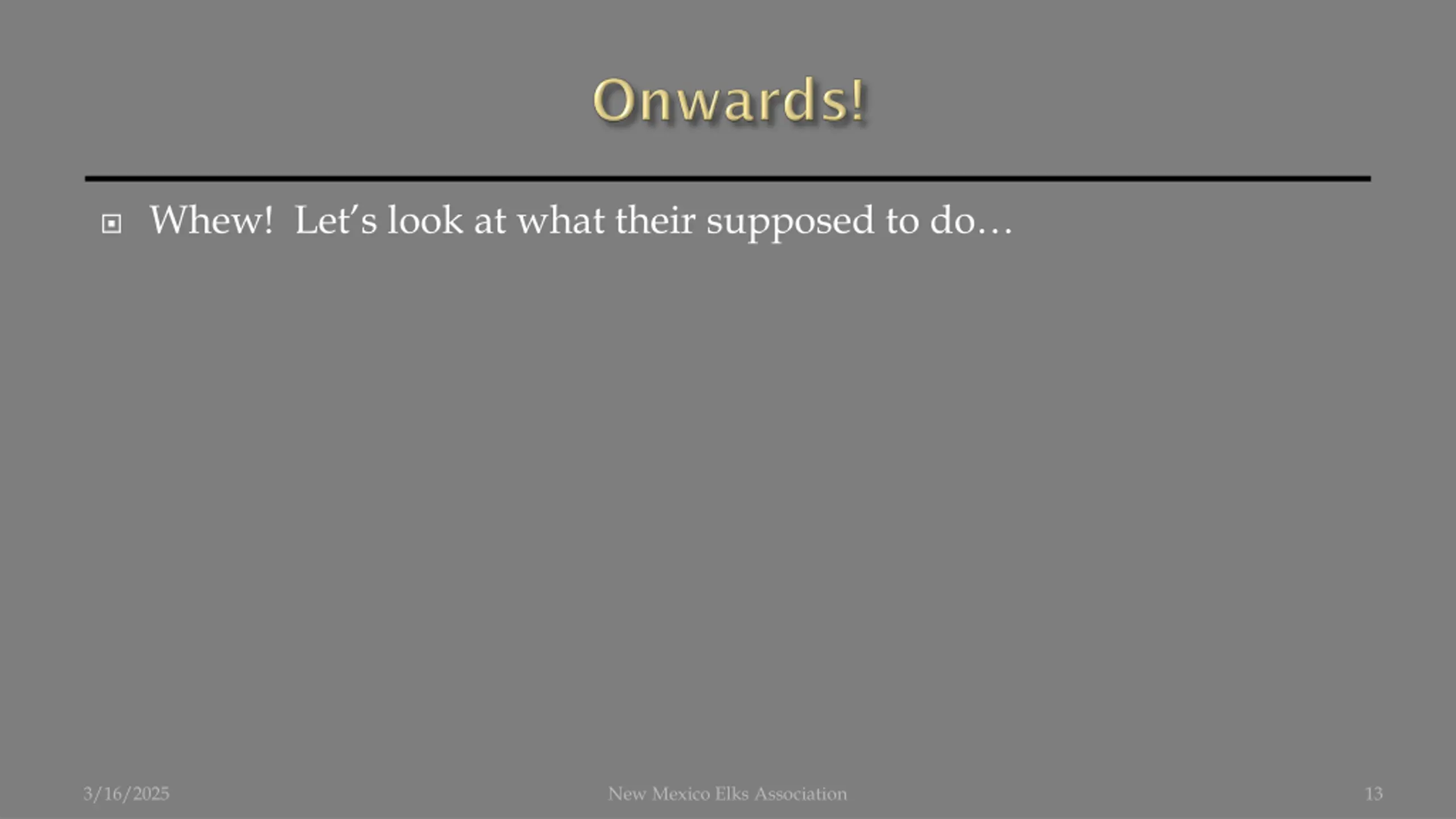 Whew! Lets look at what their supposed to do 3/16/2025 New Mexico Elks Association 13