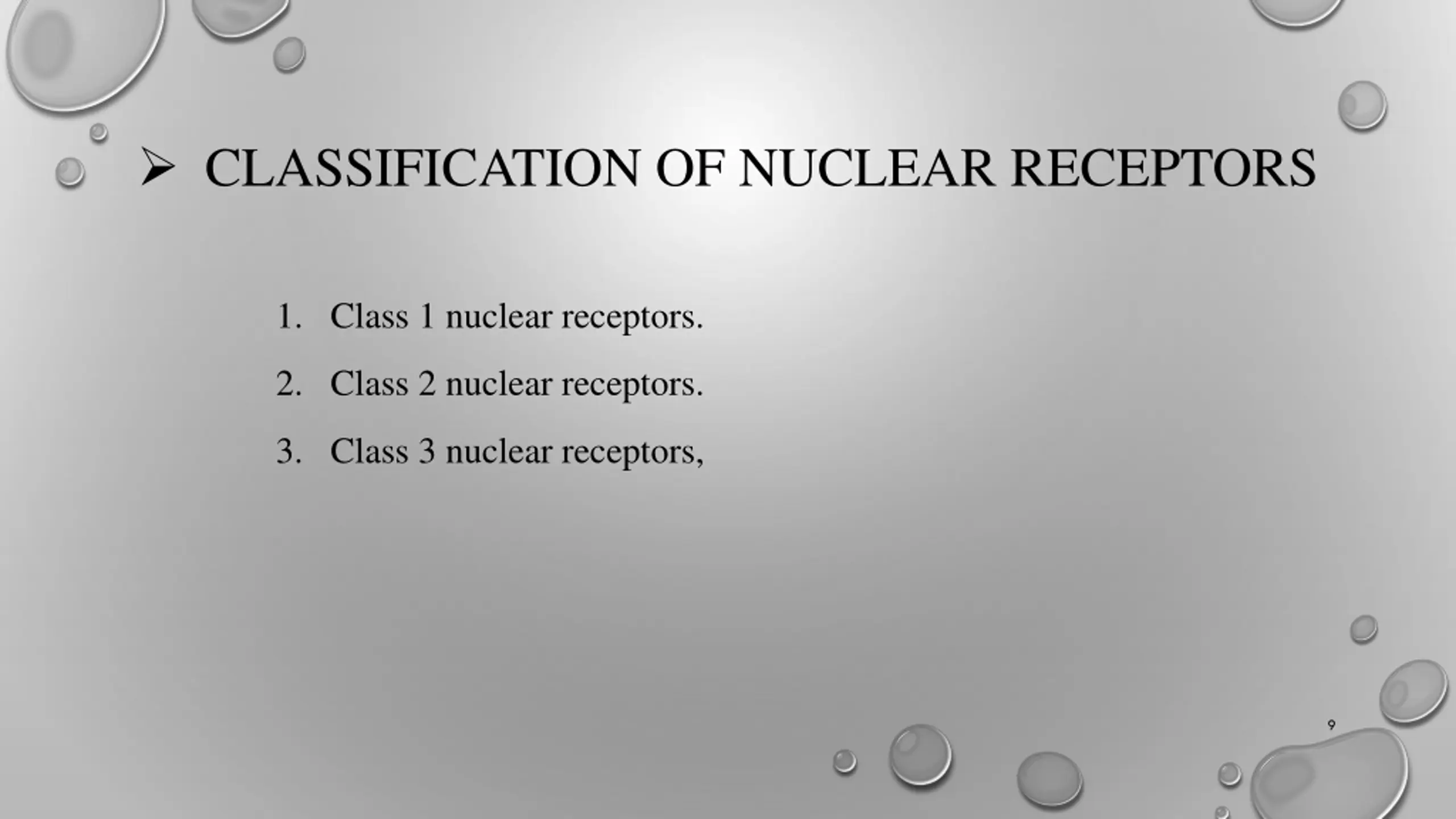 CLASSIFICATION OF NUCLEAR RECEPTORS 1. Class 1 nuclear receptors. 2. Class 2 nuclear receptors. 3. Class 3 nuclear receptors, 9