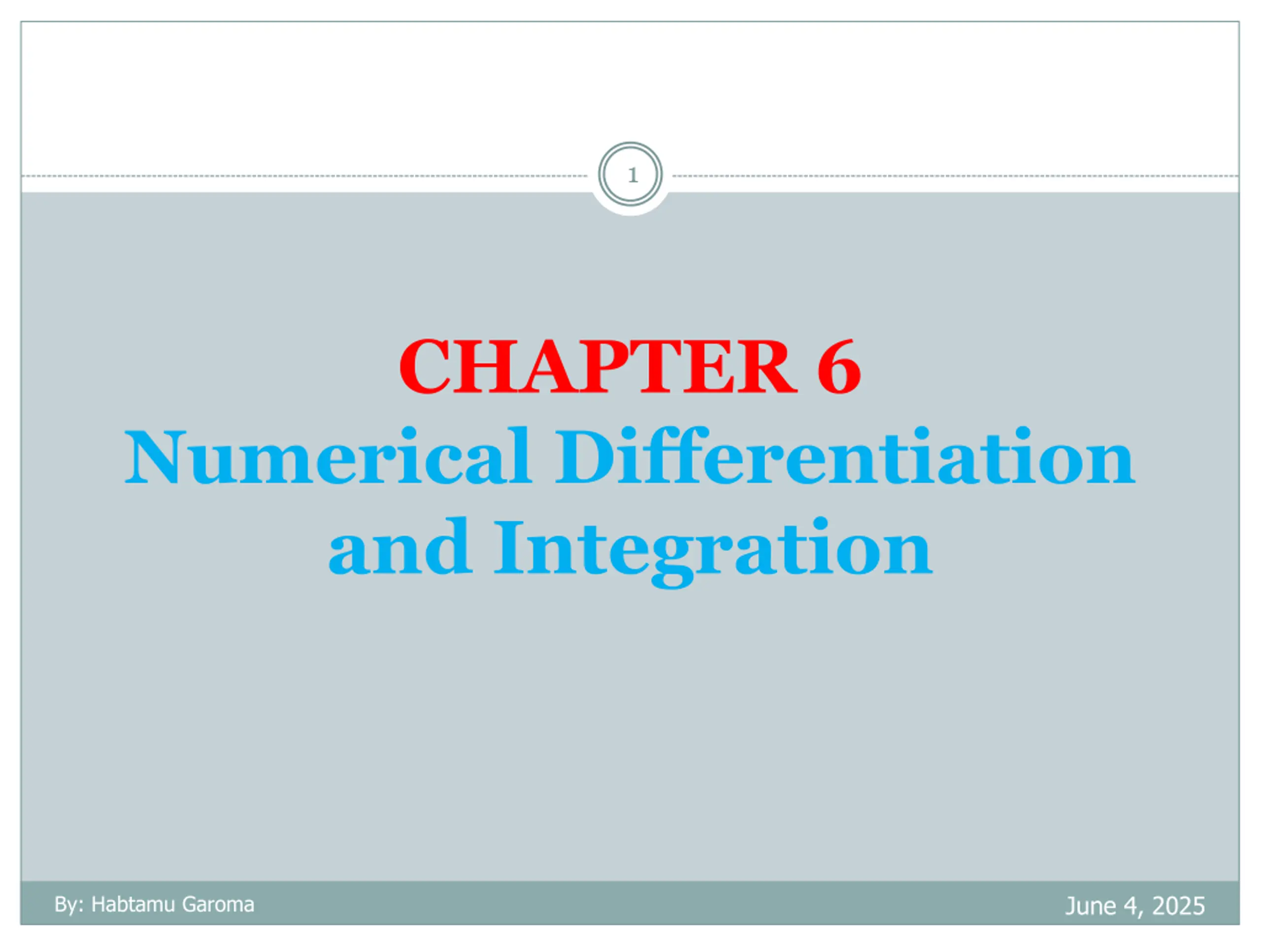 1 CHAPTER 6 Numerical Differentiation and Integration June 4, 2025 By: Habtamu Garoma