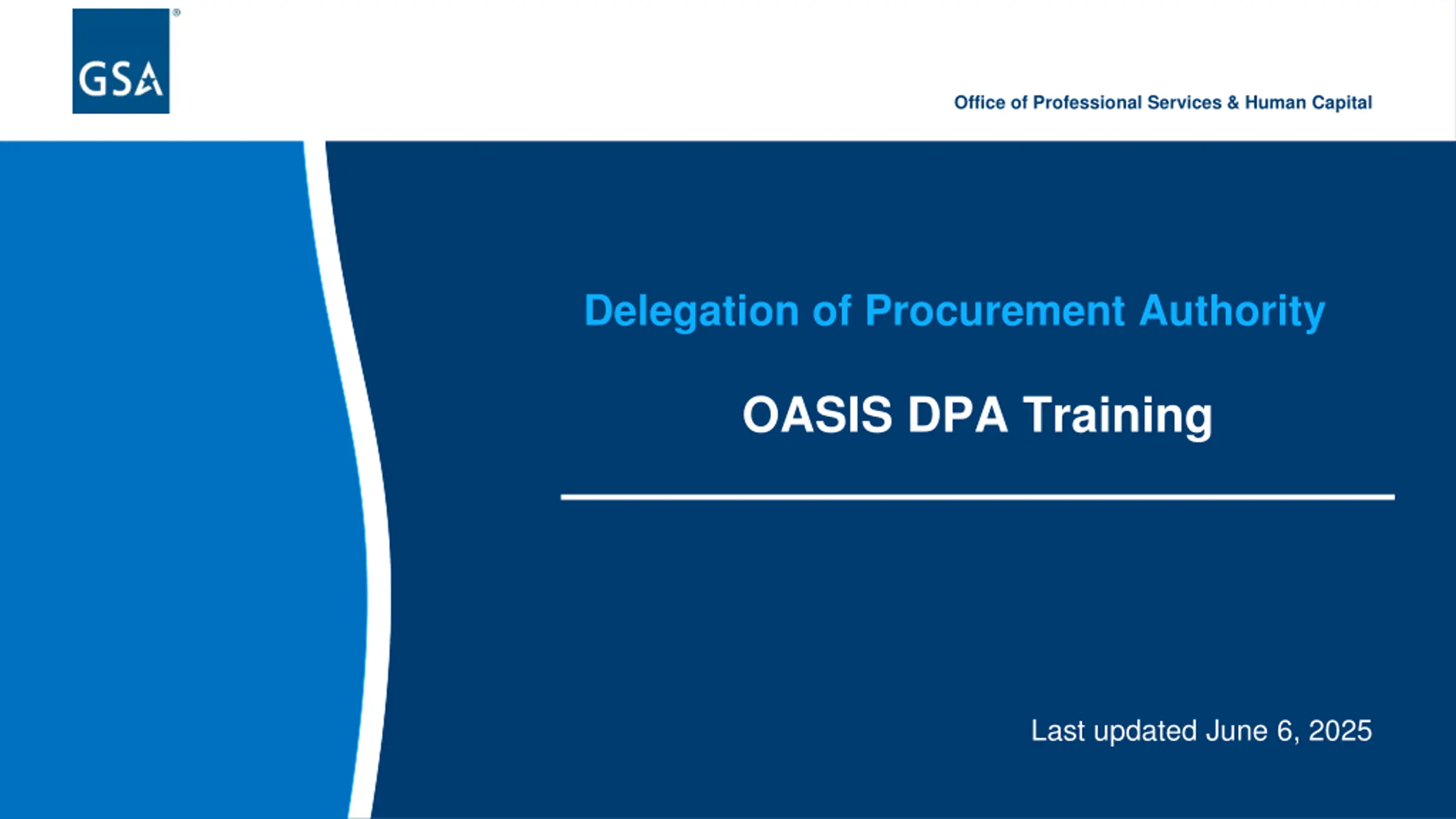 Office of Professional Services & Human Capital Delegation of Procurement Authority OASIS DPA Training Last updated June 6, 2025