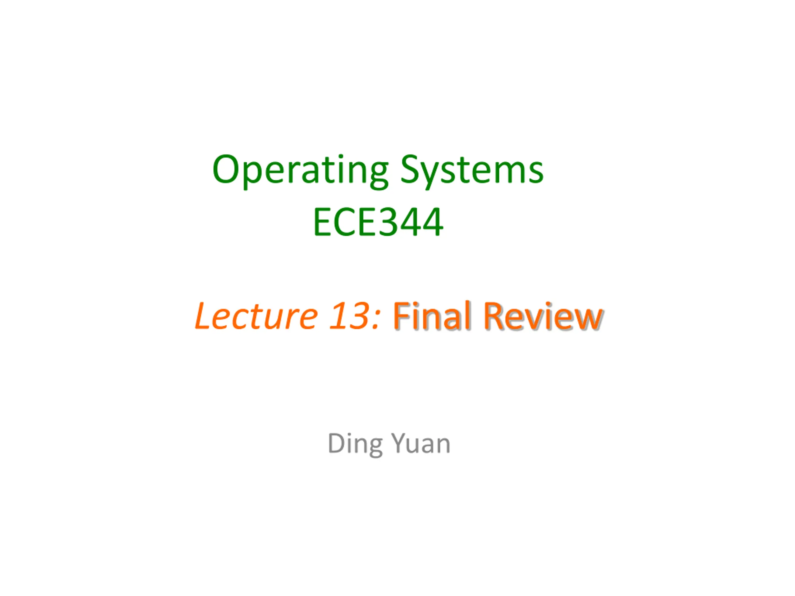 Operating Systems ECE344 Lecture 13: Final Review Ding Yuan