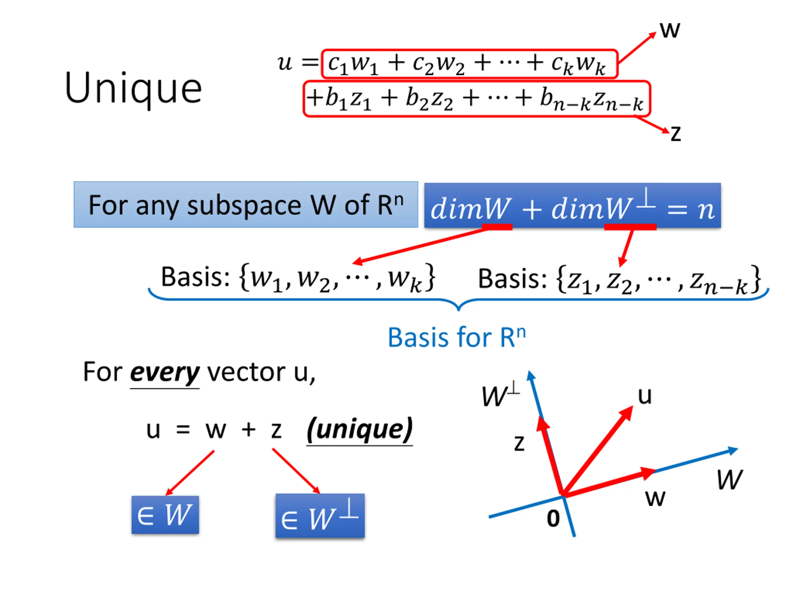 w ? = ?1?1+ ?2?2+ + ???? +?1?1+ ?2?2+ + ?? ??? ? Unique z ???? + ???? = ? For any subspace W of Rn Basis: ?1,?2, ,?? Basis: ?1,?2, ,?? ? Basis for Rn For every vector u, W u u = w + z (unique) z W w ? ? 0