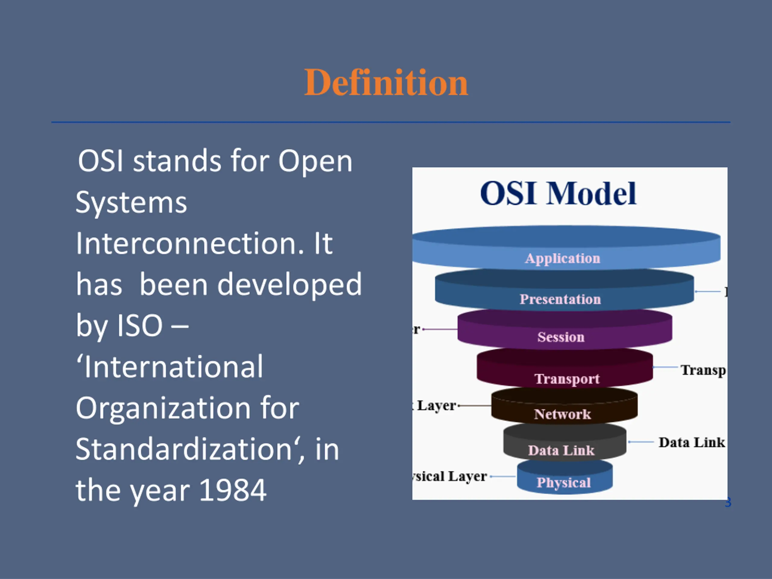 Definition OSI stands for Open Systems Interconnection. It has been developed by ISO International Organization for Standardization , in the year 1984 3