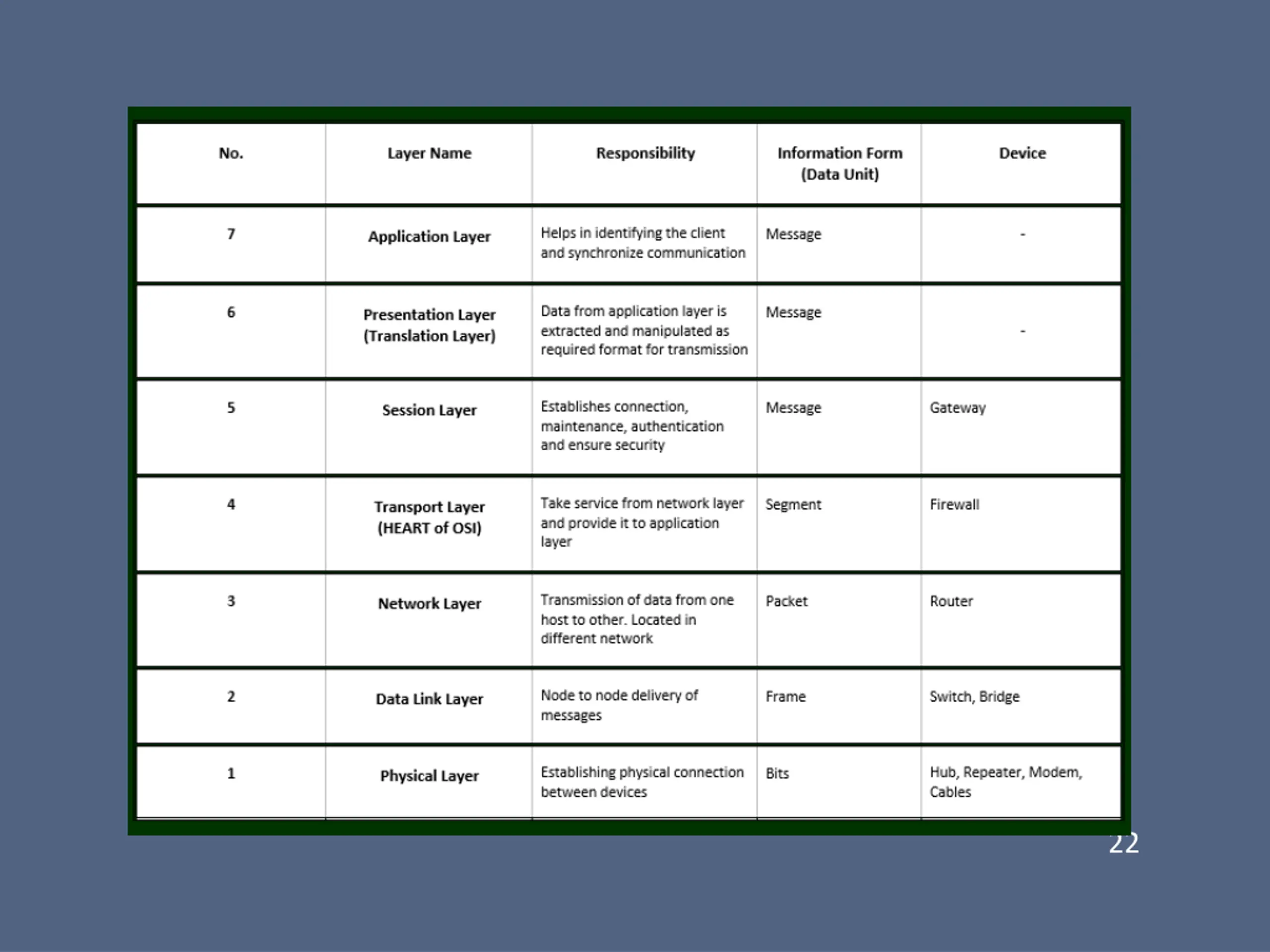 Layers of OSI Model Application Layer (Layer 7) : At the very top of the OSI Reference Model stack of layers, we find the Application layer which is implemented by the network applications. These applications produce the data, which has to be transferred over the network. This layer also serves as a window for the application services to access the network and for displaying the received information to the user. 19
