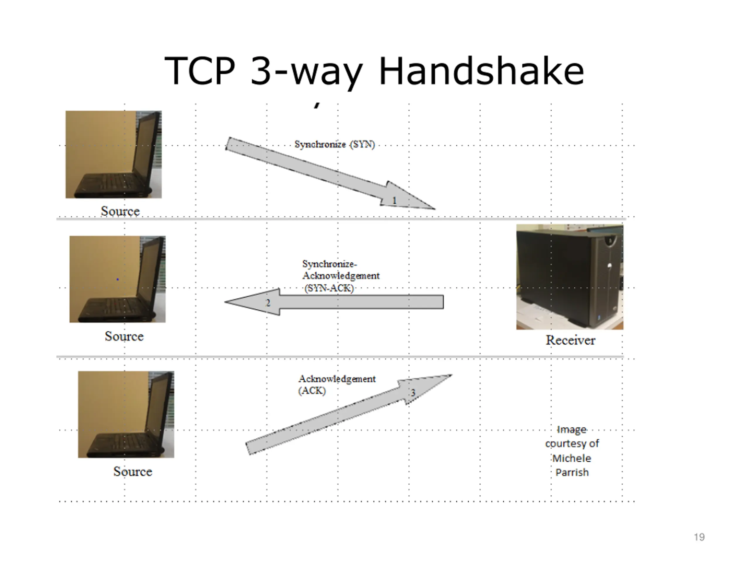 Transport Layer Protocols Transmission Control Protocol (TCP) maintains reliable, ordered delivery of segments. Connection-oriented Sequence Numbers Acknowledgements Window Sizing 18