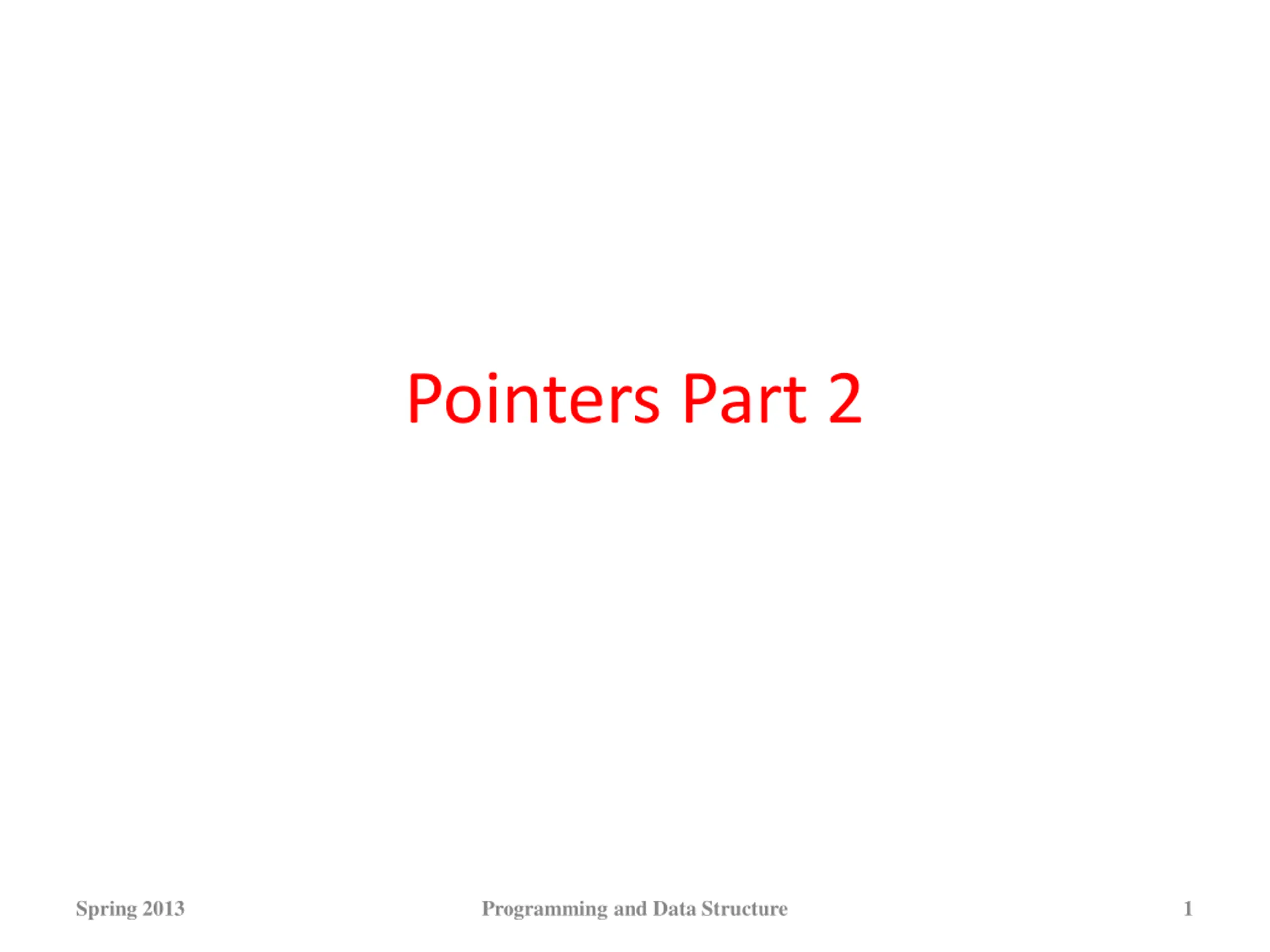 Pointers Part 2 Spring 2013 Programming and Data Structure 1