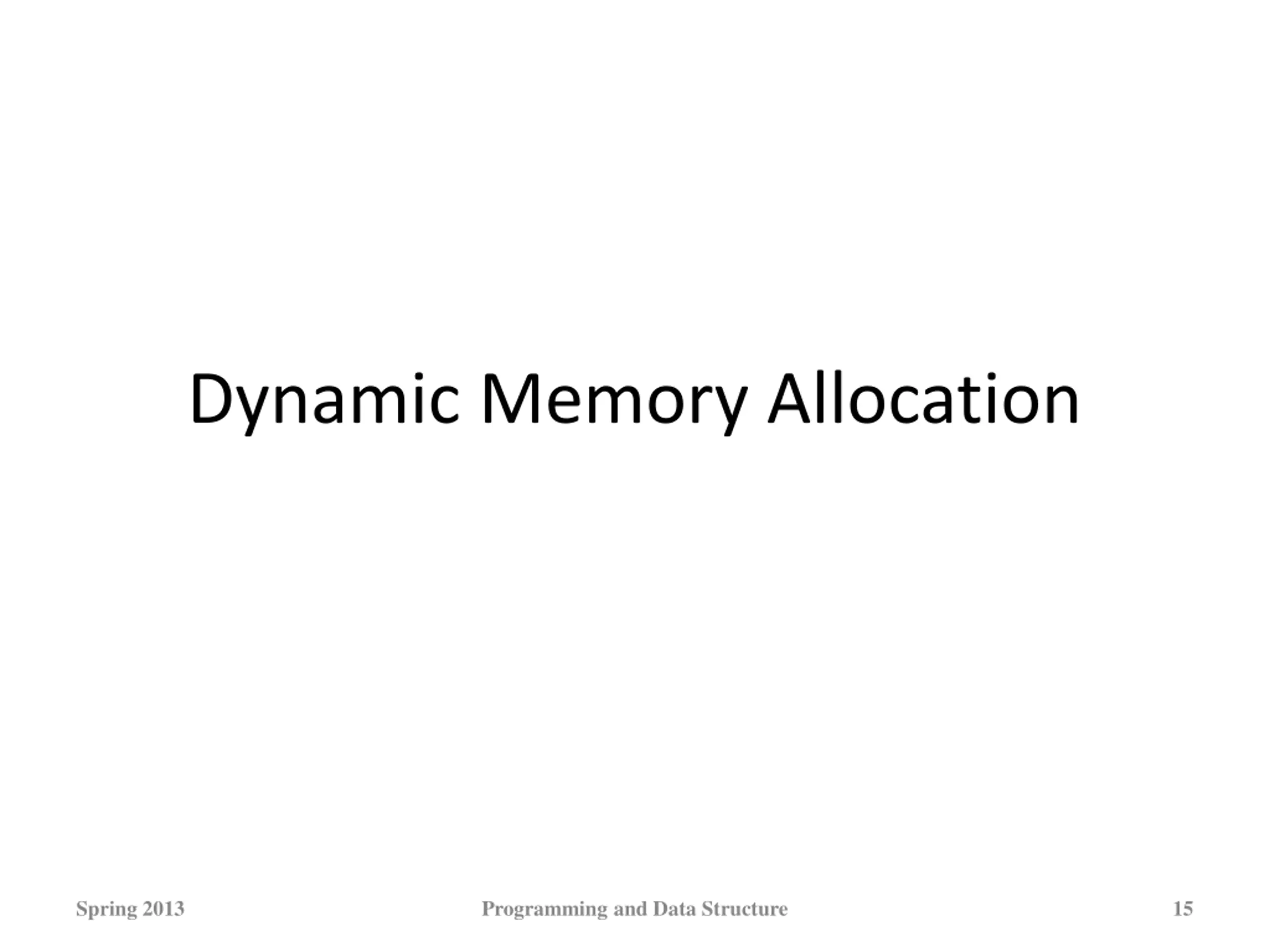 Dynamic Memory Allocation Spring 2013 Programming and Data Structure 15