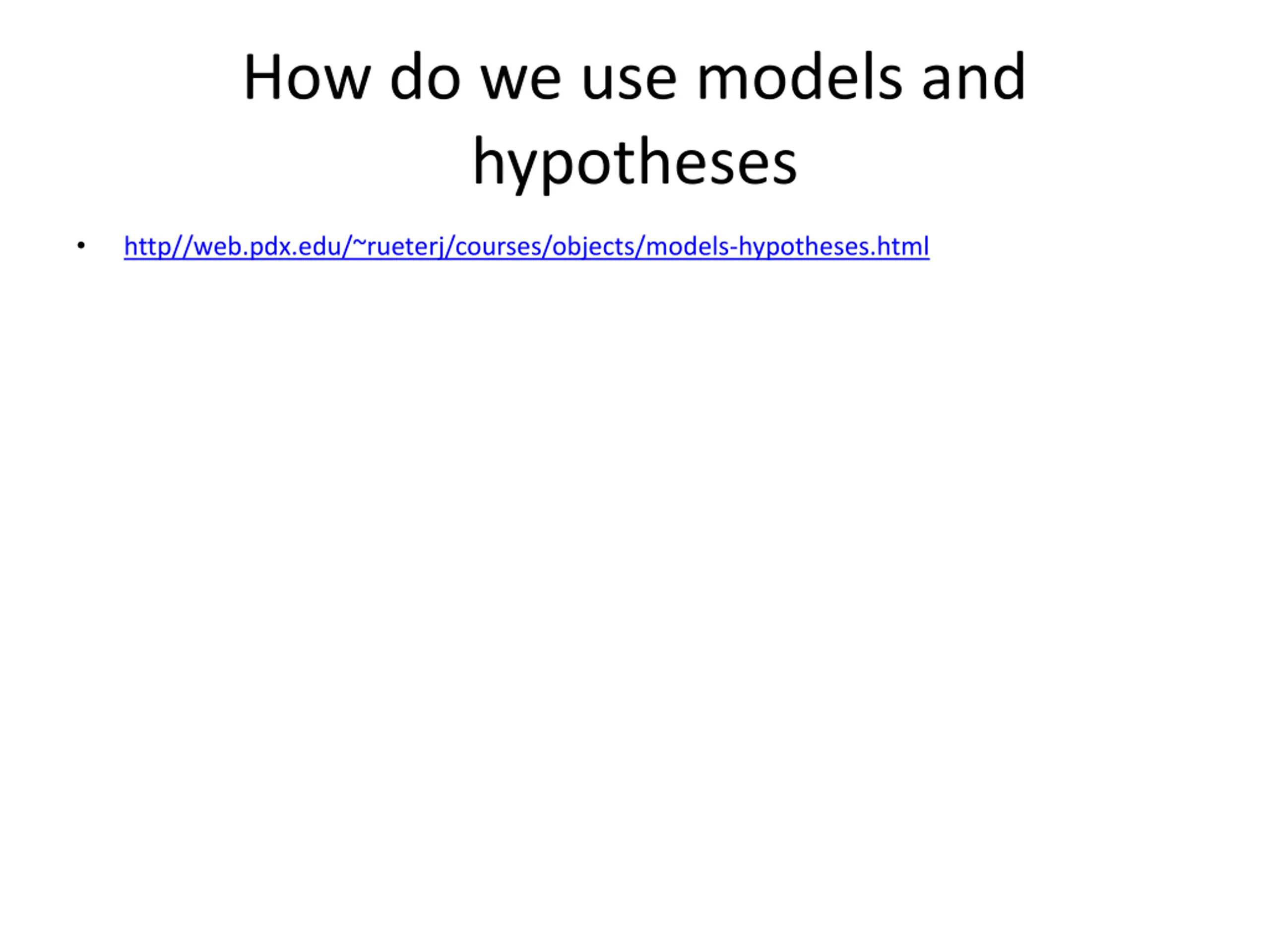 How do we use models and hypotheses http//web.pdx.edu/~rueterj/courses/objects/models-hypotheses.html