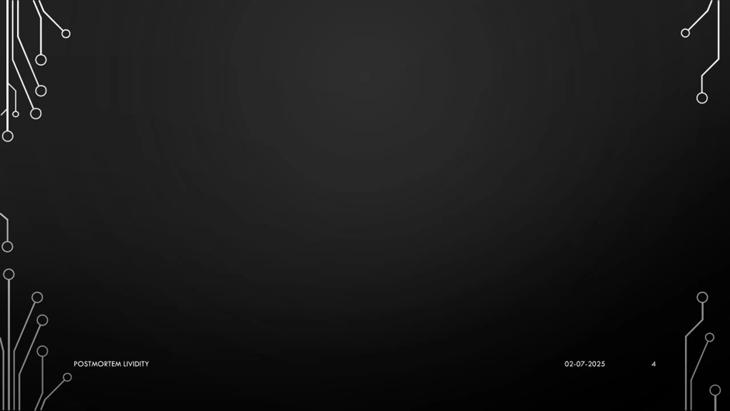 CONTENTS Introduction Mechanism Development of PM staining Fixation of PM staining Features Factors influencing PM staining Medicolegal importance Summary 02-07-2025 2 POSTMORTEM LIVIDITY