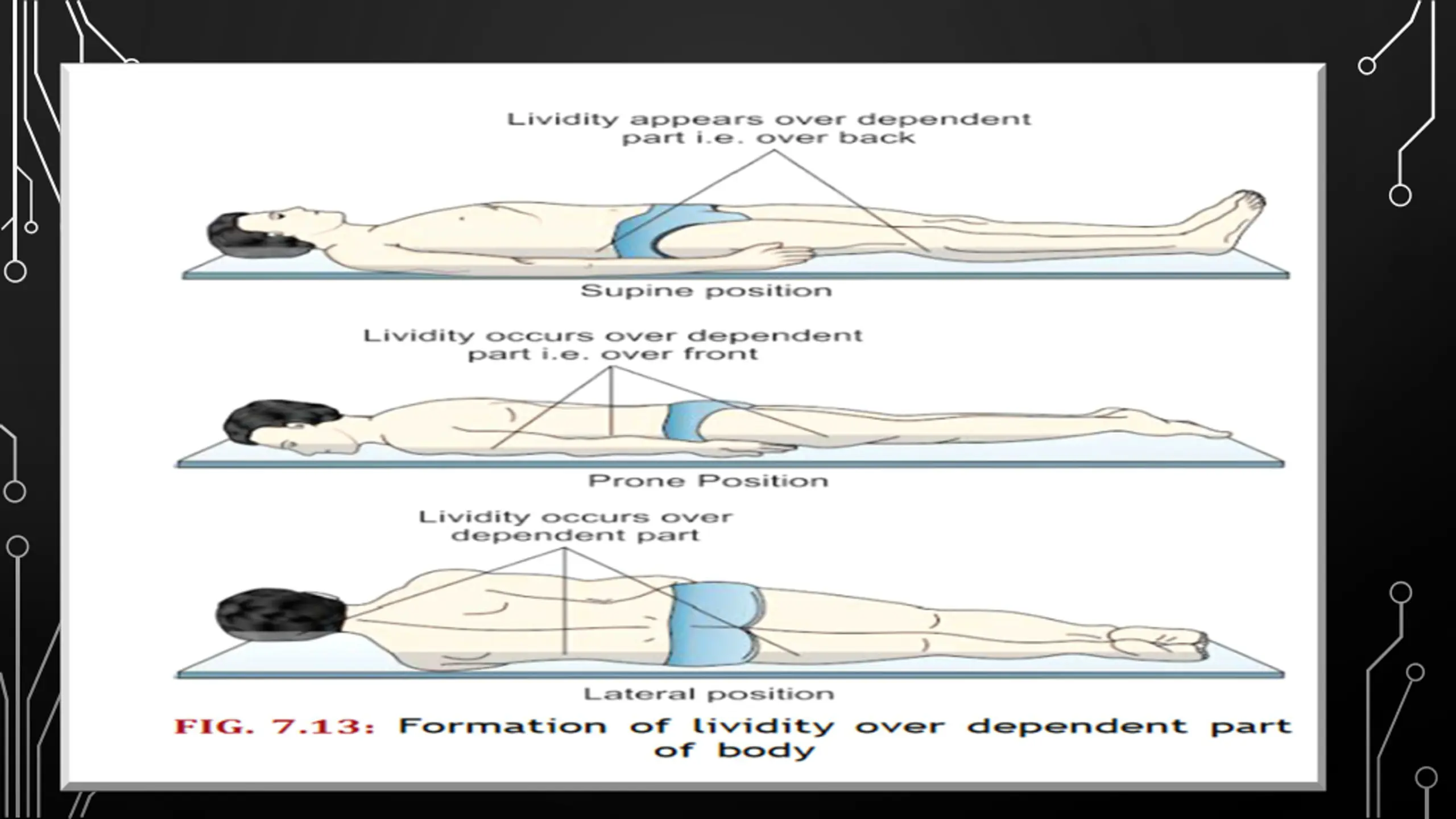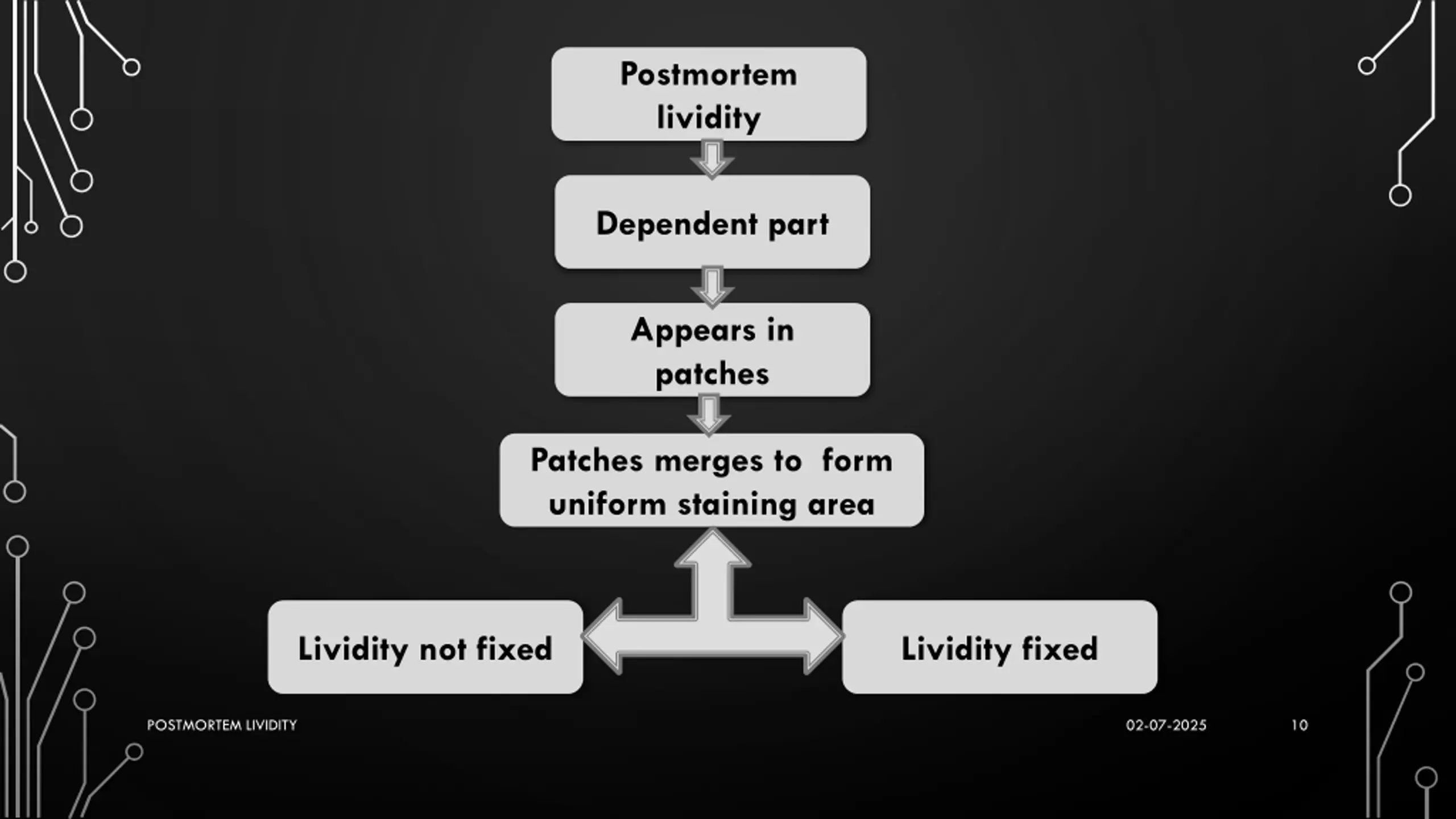 Lividity not fixed Position of body changed Position changed frequently No lividity appears Lividity appears at new area POSTMORTEM LIVIDITY 02-07-2025 11