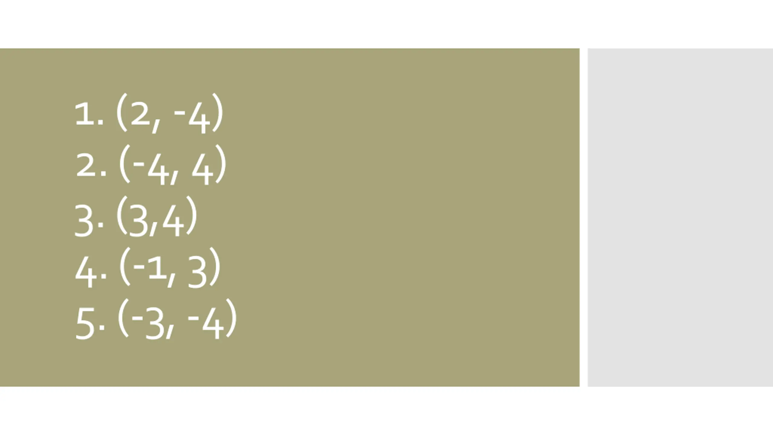 1. (2, -4) 2. (-4, 4) 3. (3,4) 4. (-1, 3) 5. (-3, -4)