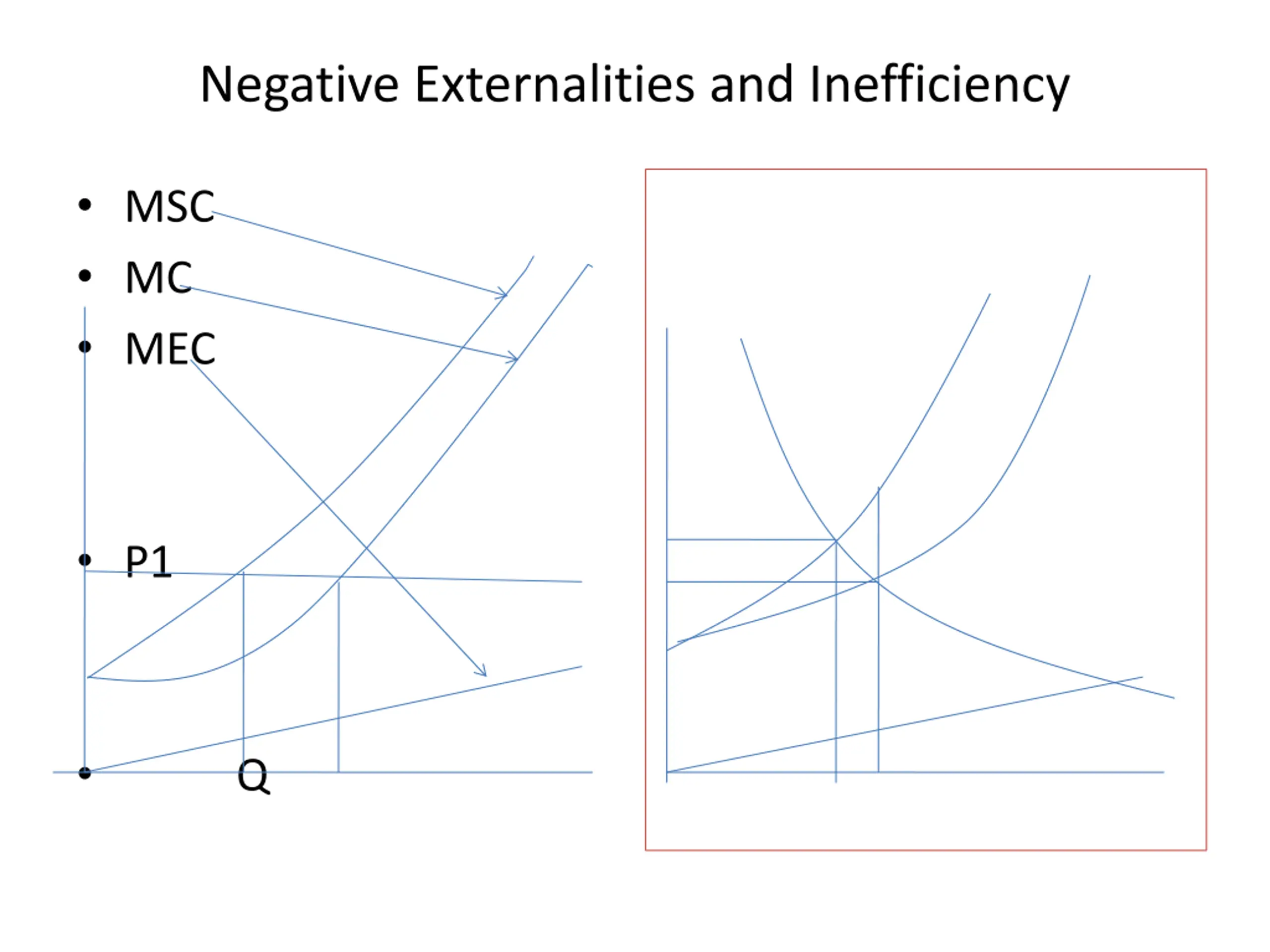 Negative Externalities and Inefficiency MSC MC MEC P1 Q