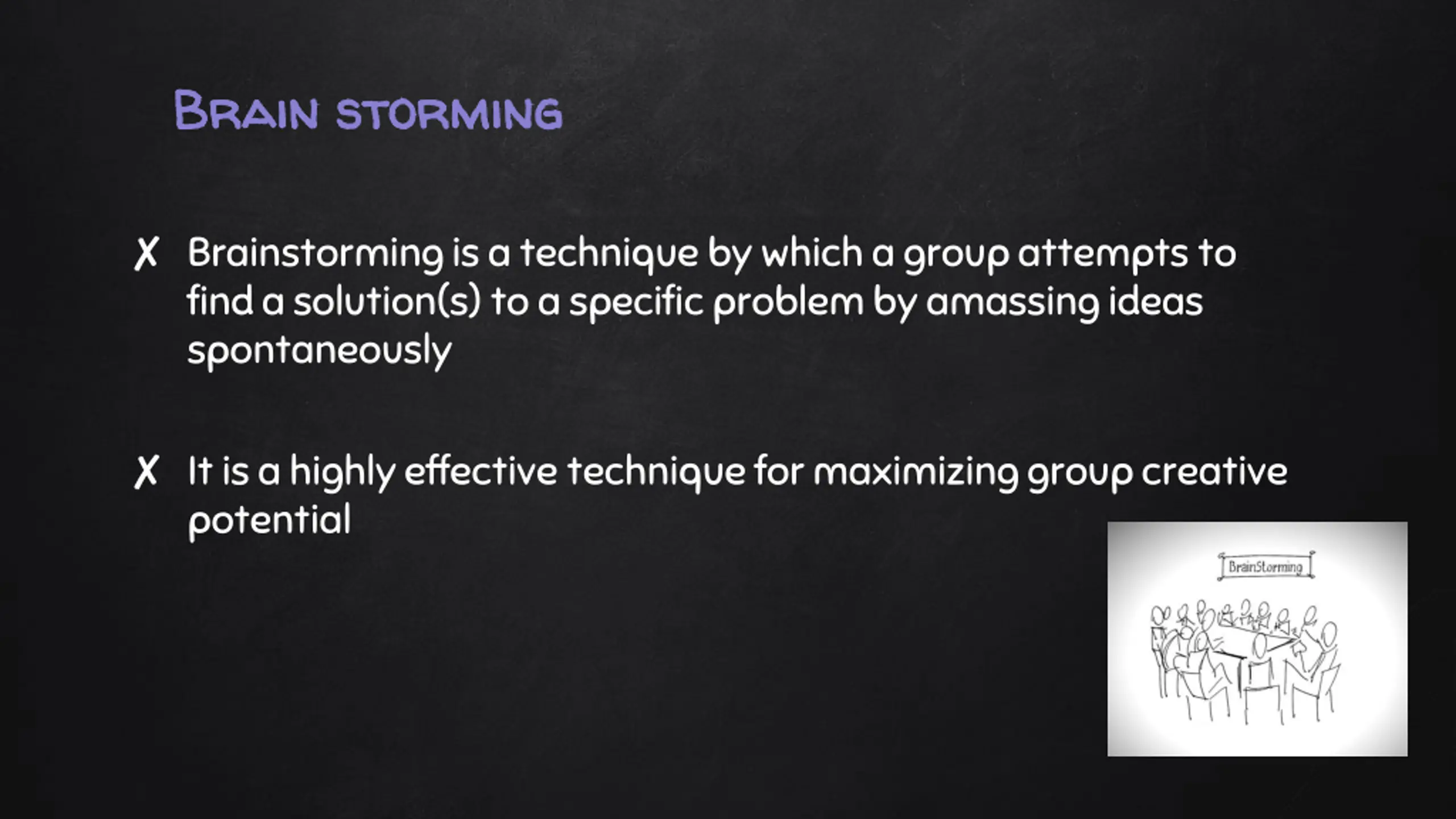 Brain storming Brain storming Brainstorming is a technique by which a group attempts to find a solution(s) to a specific problem by amassing ideas spontaneously It is a highly effective technique for maximizing group creative potential