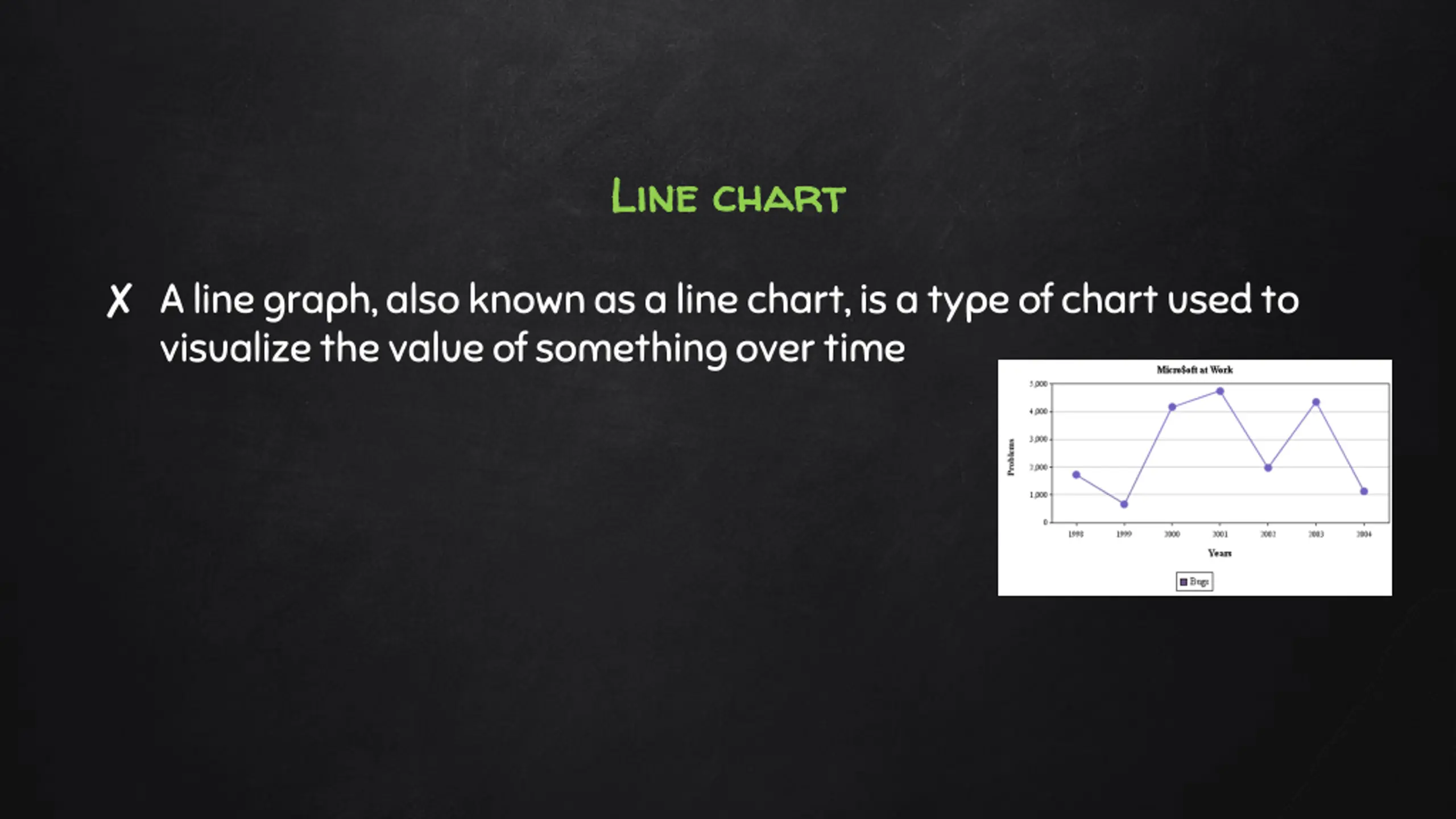 Line chart Line chart A line graph, also known as a line chart, is a type of chart used to visualize the value of something over time