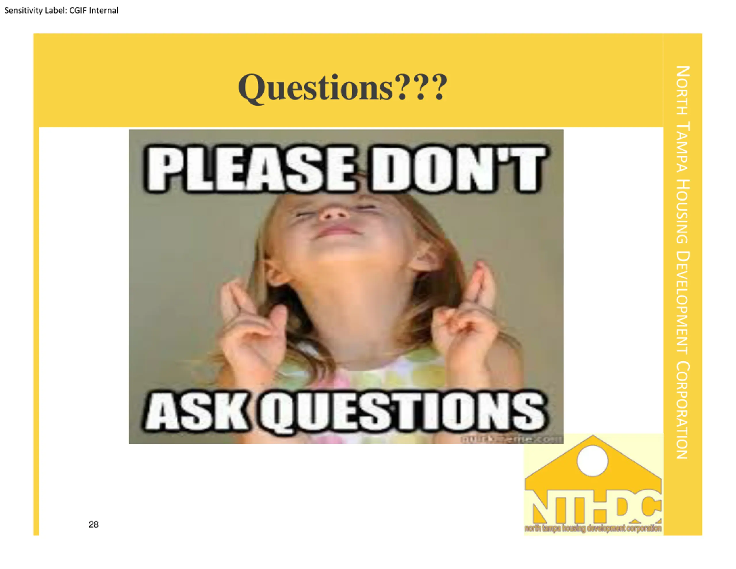Sensitivity Label: CGIF Internal Questions??? NORTH TAMPA HOUSING DEVELOPMENT CORPORATION 28