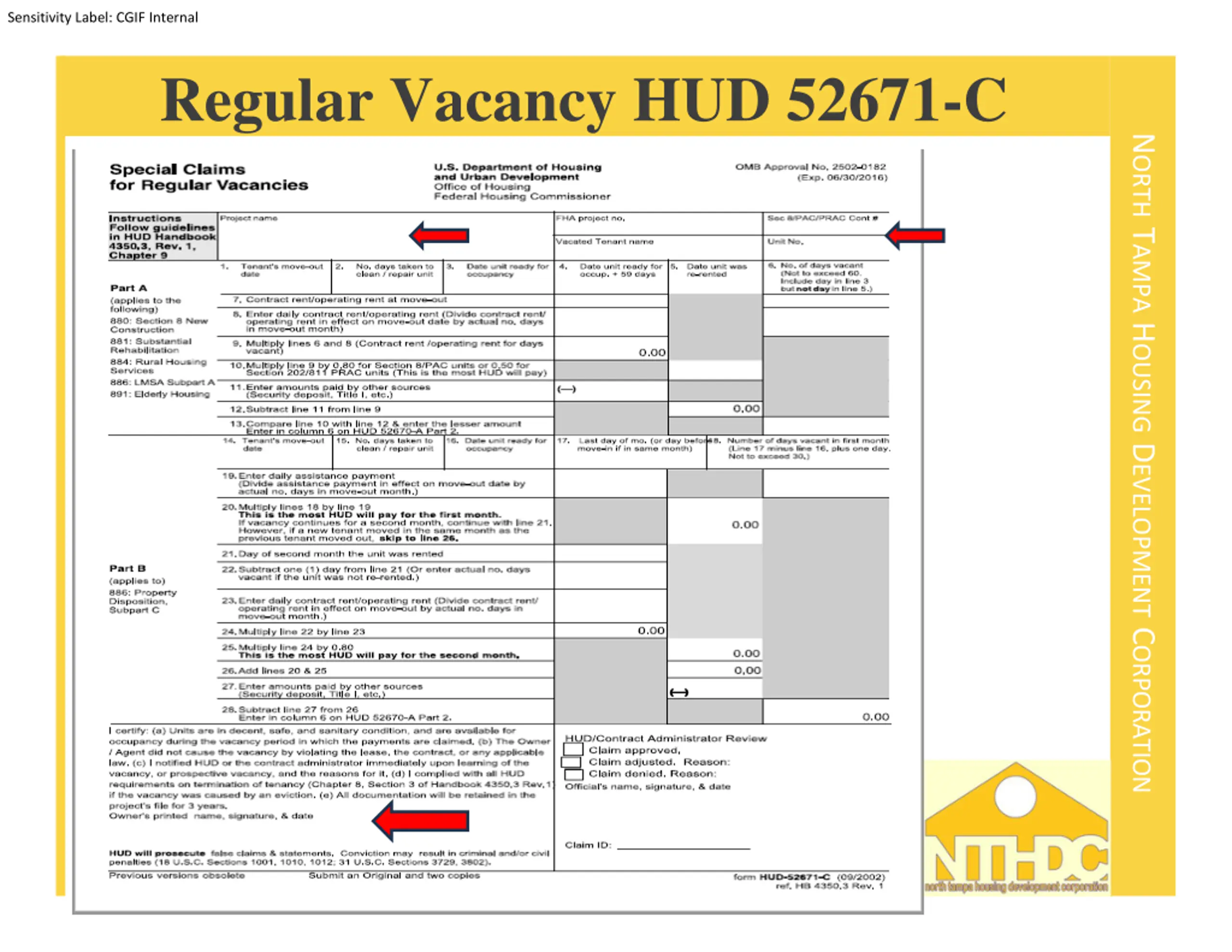 Sensitivity Label: CGIF Internal Regular Vacancy HUD 52671-C NORTH TAMPA HOUSING DEVELOPMENT CORPORATION 1 0