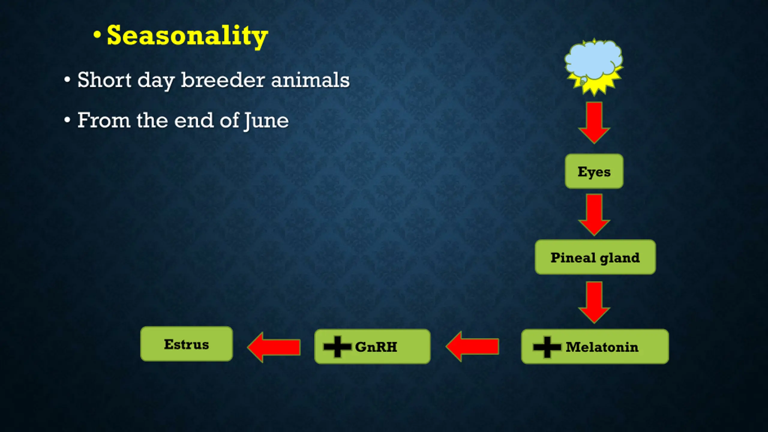 Seasonality Short day breeder animals From the end of June Eyes Pineal gland Estrus GnRH Melatonin