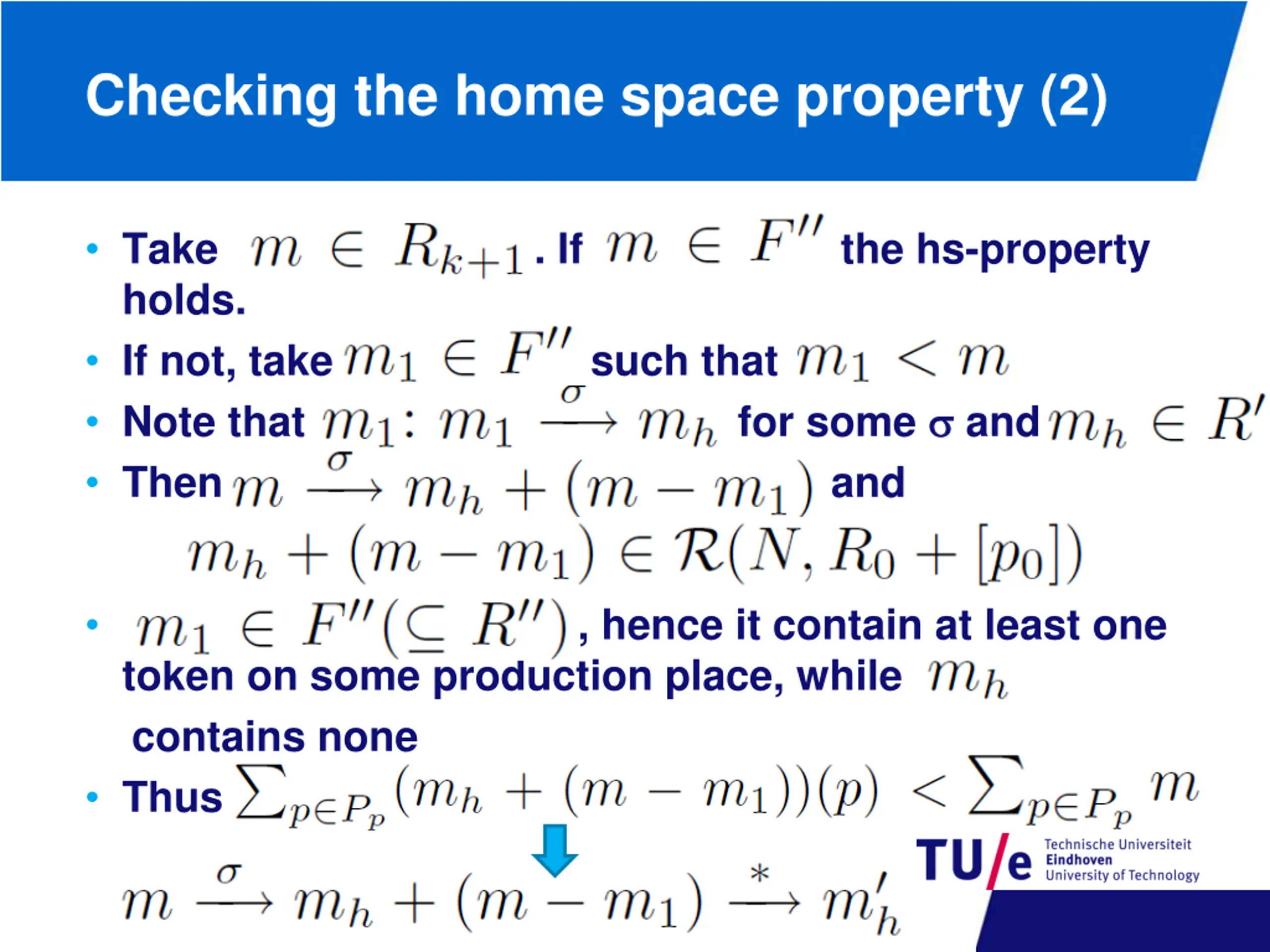 Checking the home space property (2) Take . If the hs-property holds. If not, take such that Note that for some and Then and , hence it contain at least one token on some production place, while contains none Thus