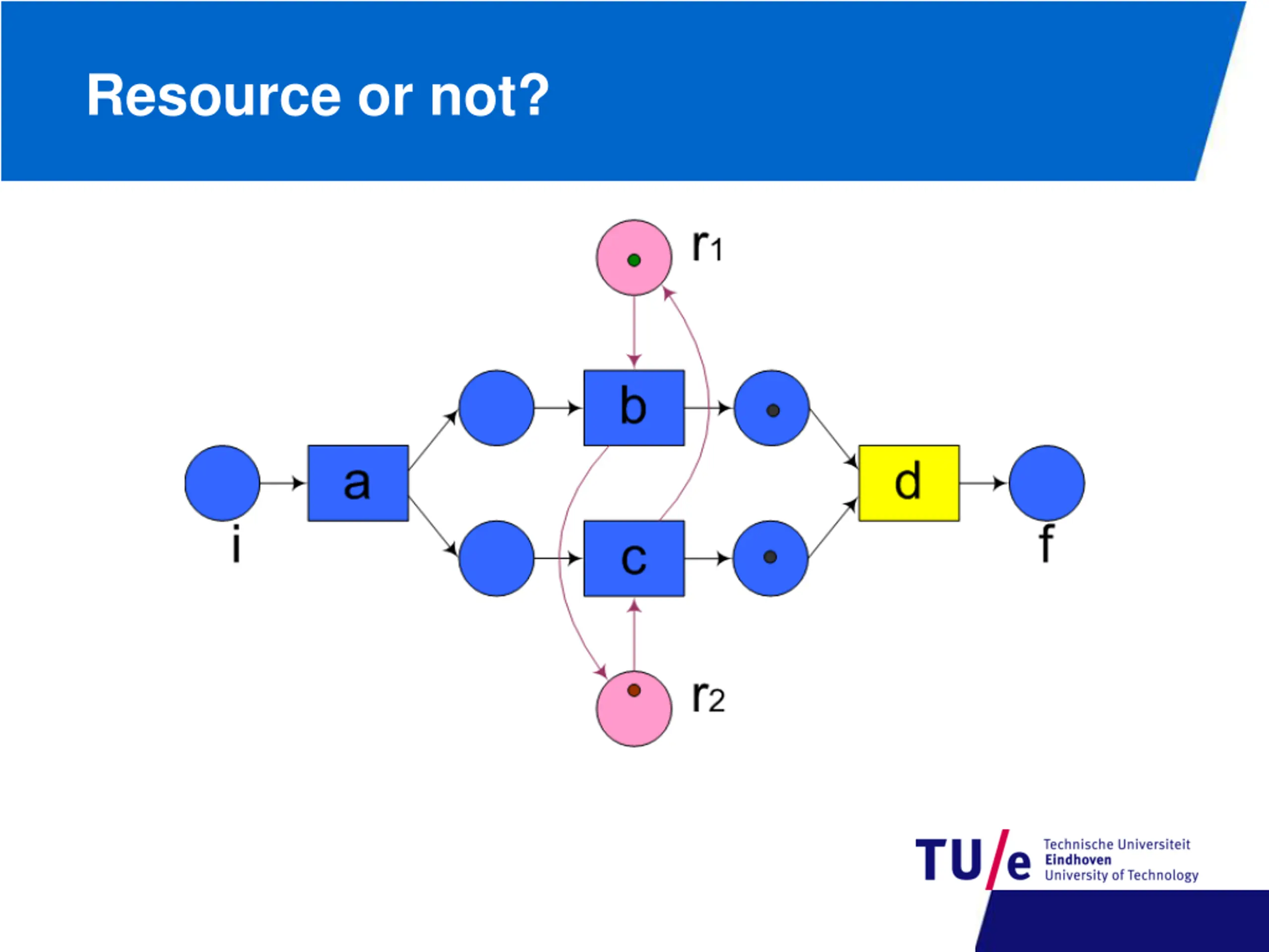 Different types of resources Durable: machines, people Consumable: paper, building materials, etc. Producible: whatever you produce in your process We will focus on durable resources only They get involved in the process when executing some tasks and then get released When all instances terminate, it s logical to expect that all resources are back