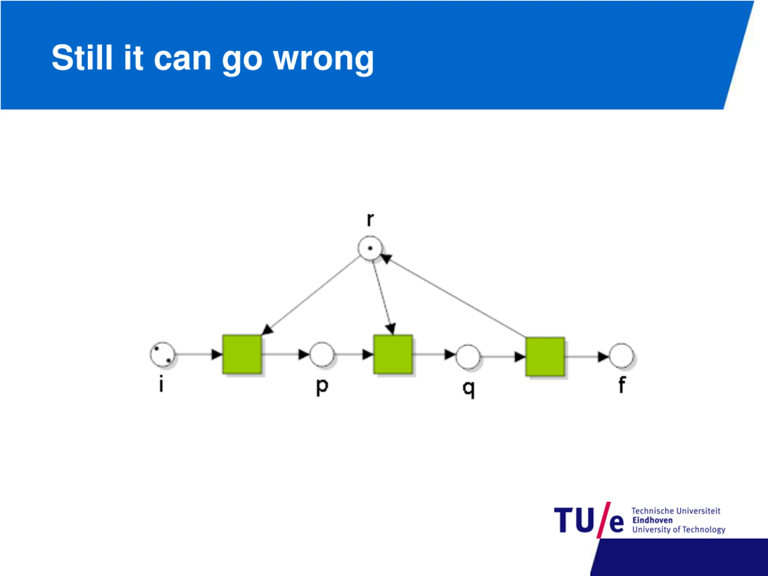 Resource-Constrained WF-nets (RCWF-nets) Resource places Pr Production net Np with production places Pp f i Pr Pp= A Petri net N with a set of places Pp Pr is an RCWF-net if its projection on Pp is a workflow net.