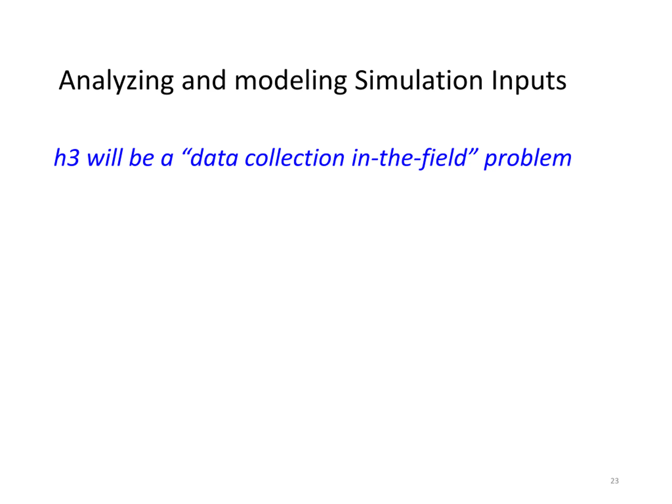 Analyzing and modeling Simulation Inputs h3 will be a data collection in-the-field problem 23
