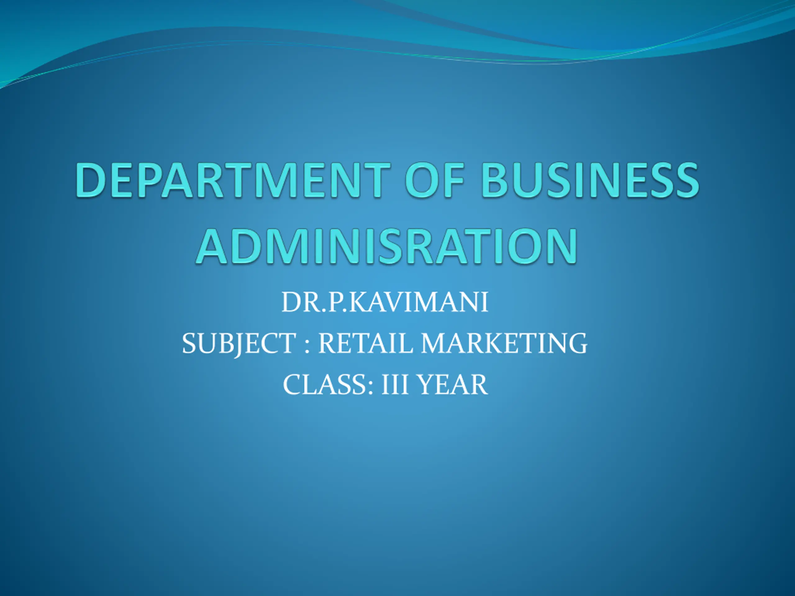 DR.P.KAVIMANI SUBJECT : RETAIL MARKETING CLASS: III YEAR