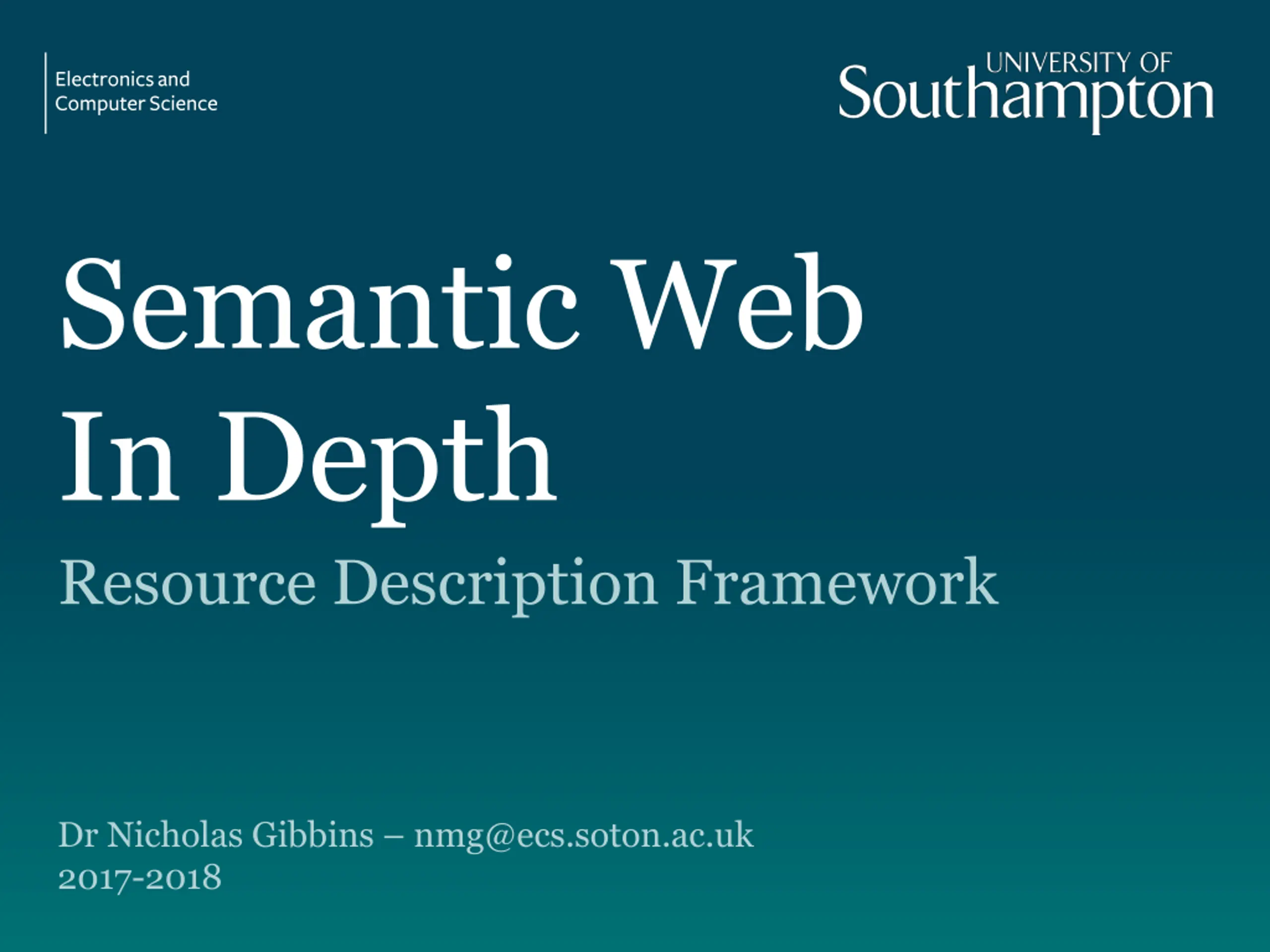 Semantic Web In Depth Resource Description Framework Dr Nicholas Gibbins nmg@ecs.soton.ac.uk 2017-2018