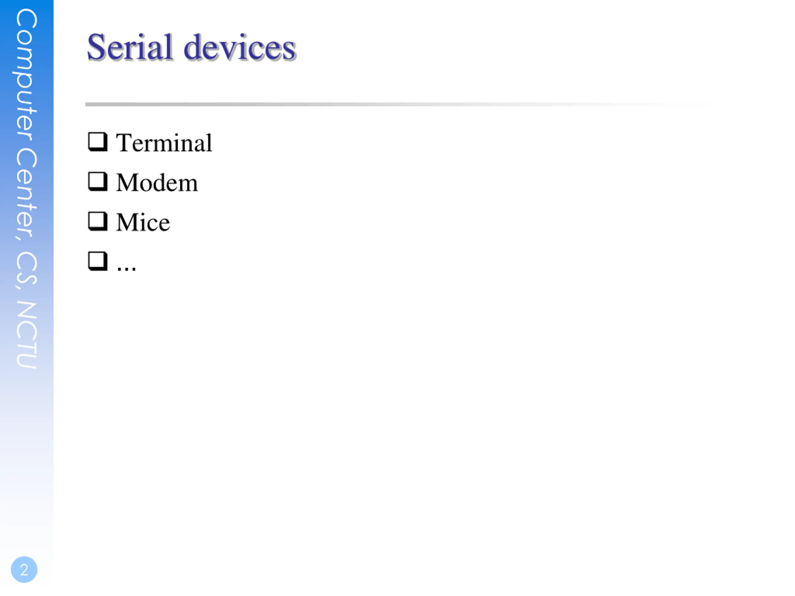 Computer Center, CS, NCTU Serial devices Terminal Modem Mice 2