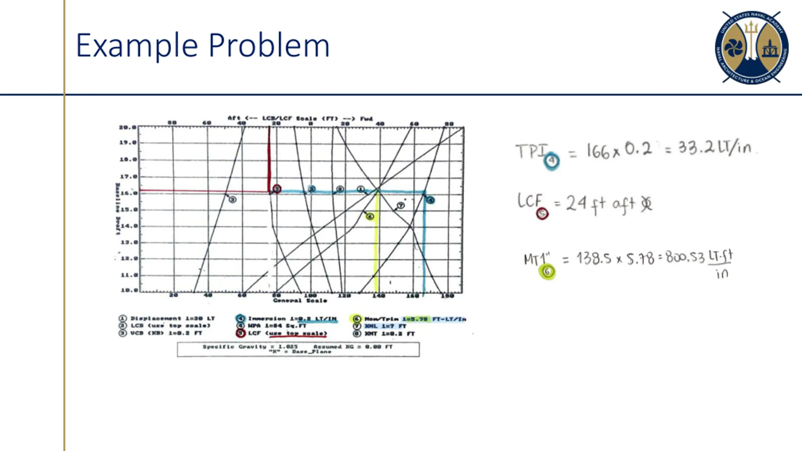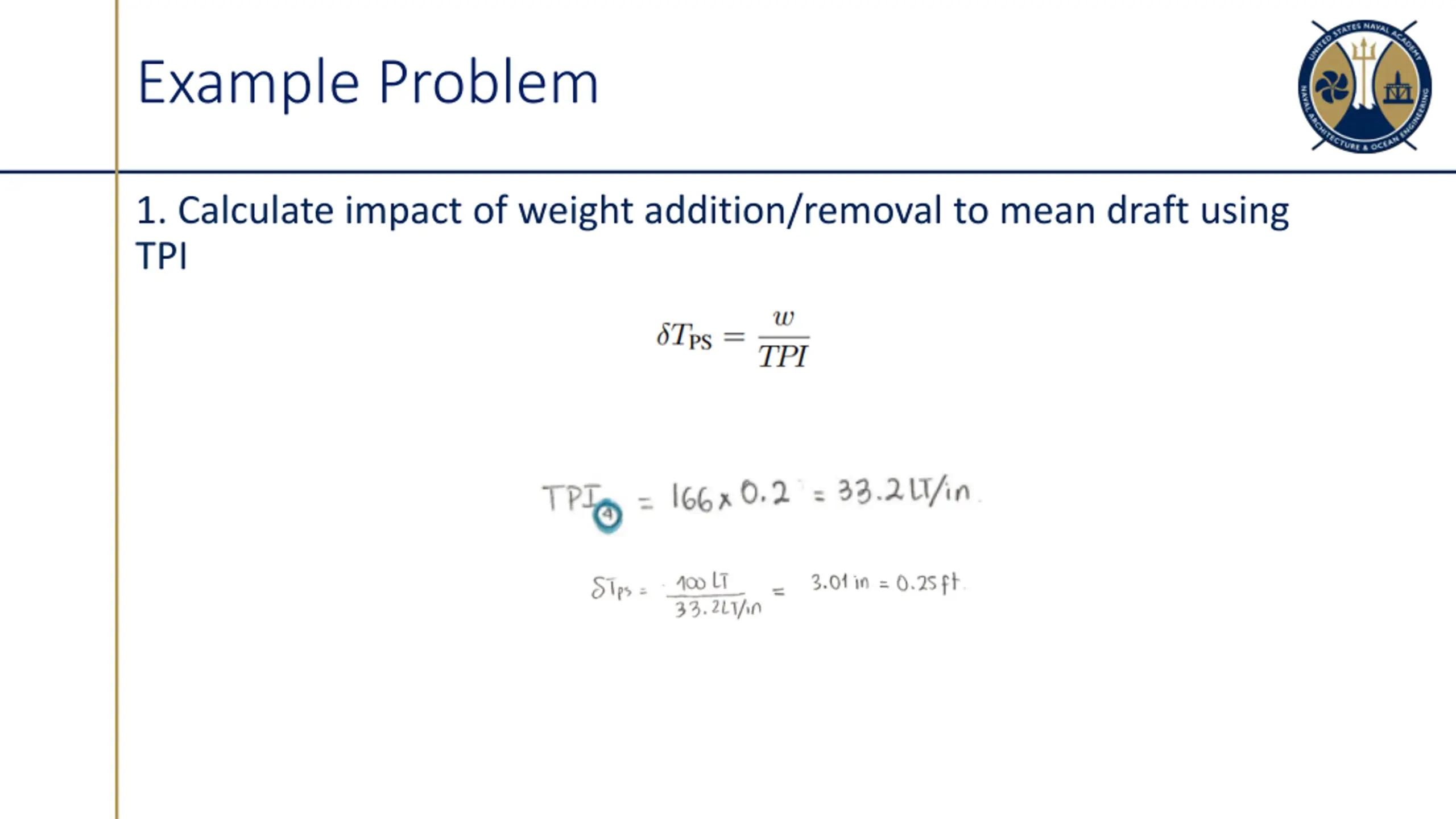 Example Problem 1. Calculate impact of weight addition/removal to mean draft using TPI