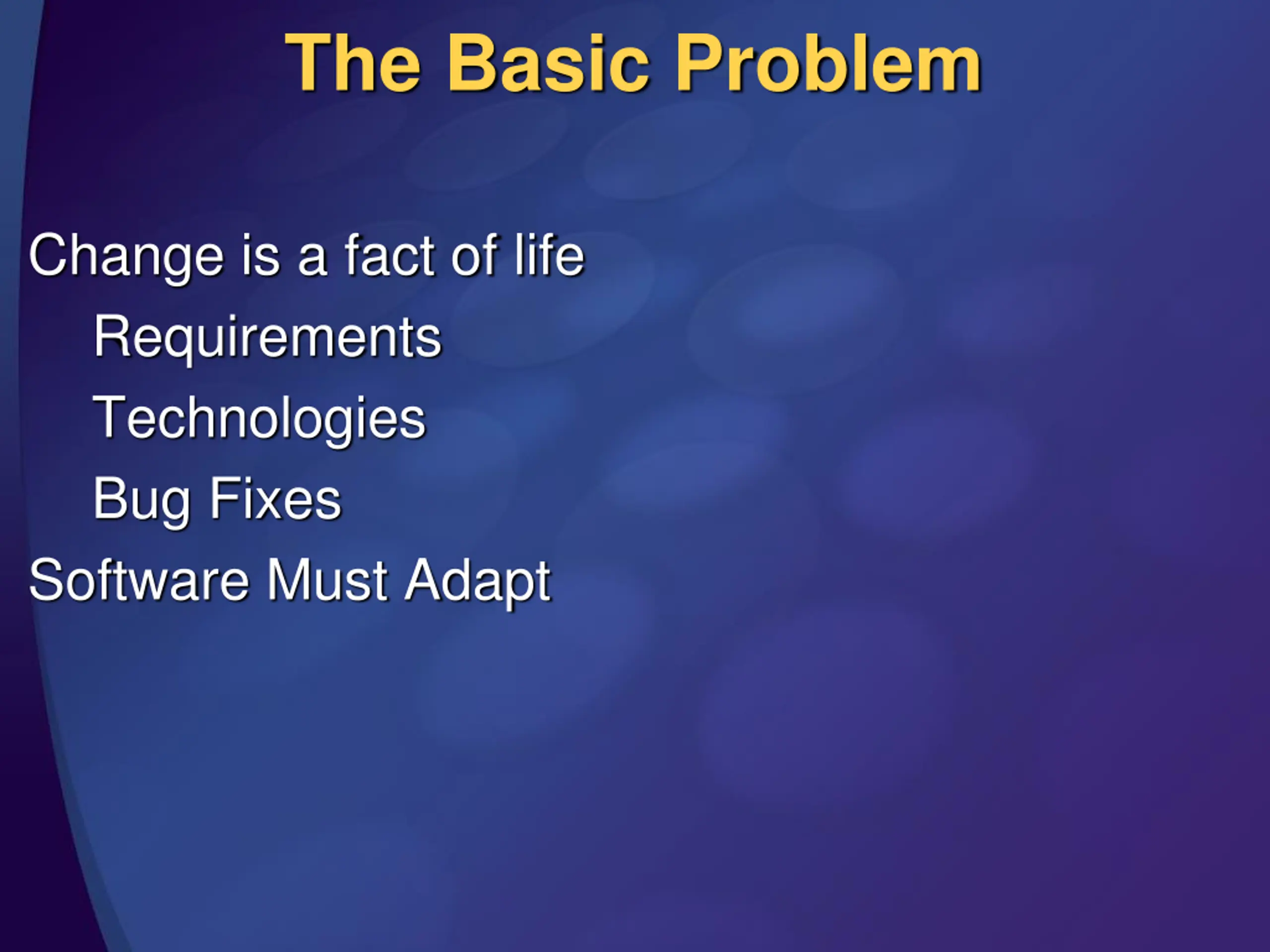 The Basic Problem Change is a fact of life Requirements Technologies Bug Fixes Software Must Adapt