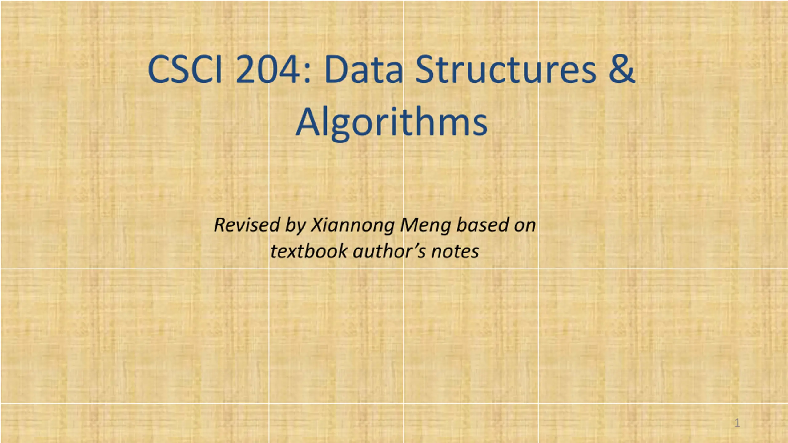 CSCI 204: Data Structures & Algorithms Revised by Xiannong Meng based on textbook author s notes 1